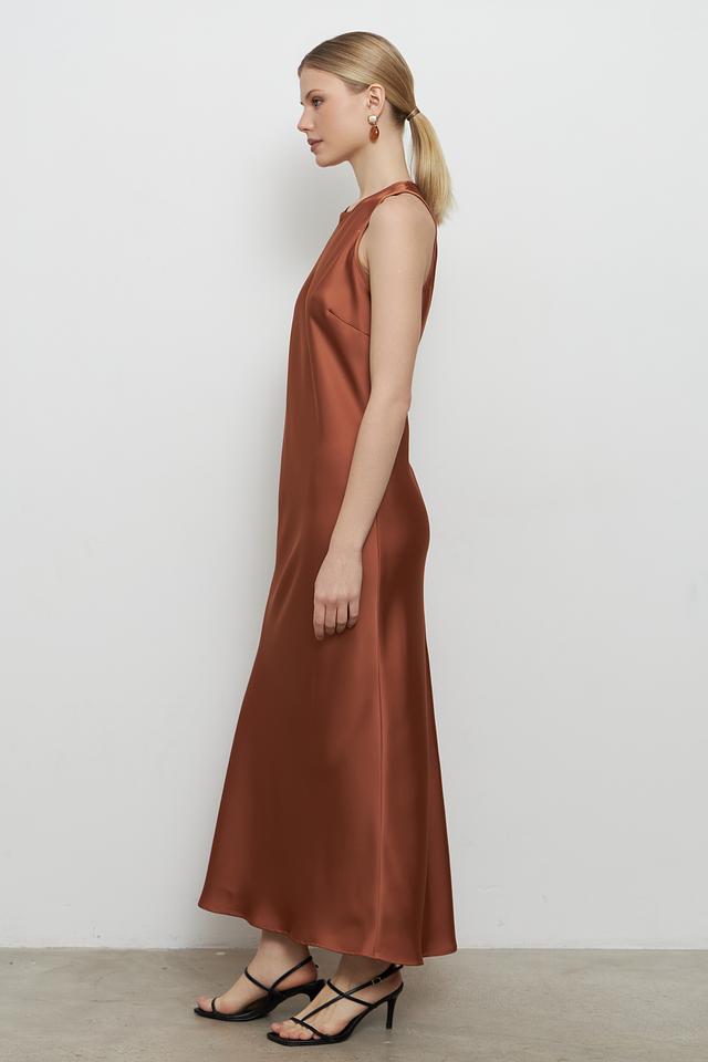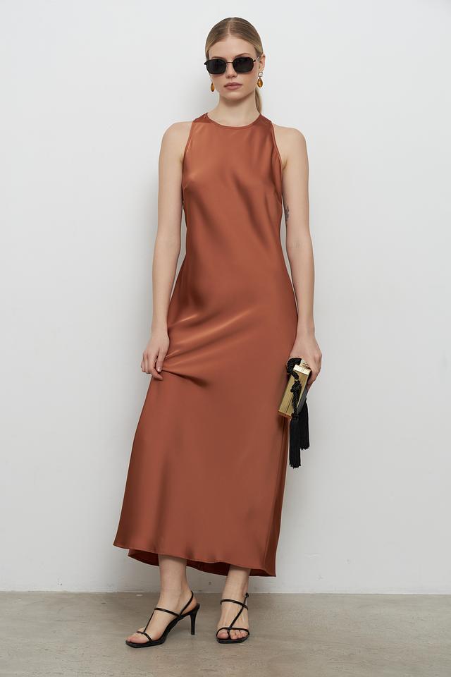 Платье Penny Black Pink терракотового цвета – это элегантное и женственное решение для создания стильного образа. Атласная ткань придает изделию благородный блеск и приятные тактильные ощущения. Платье идеально подойдет для вечерних выходов и особых случаев. Состав: полиэстер 100%
