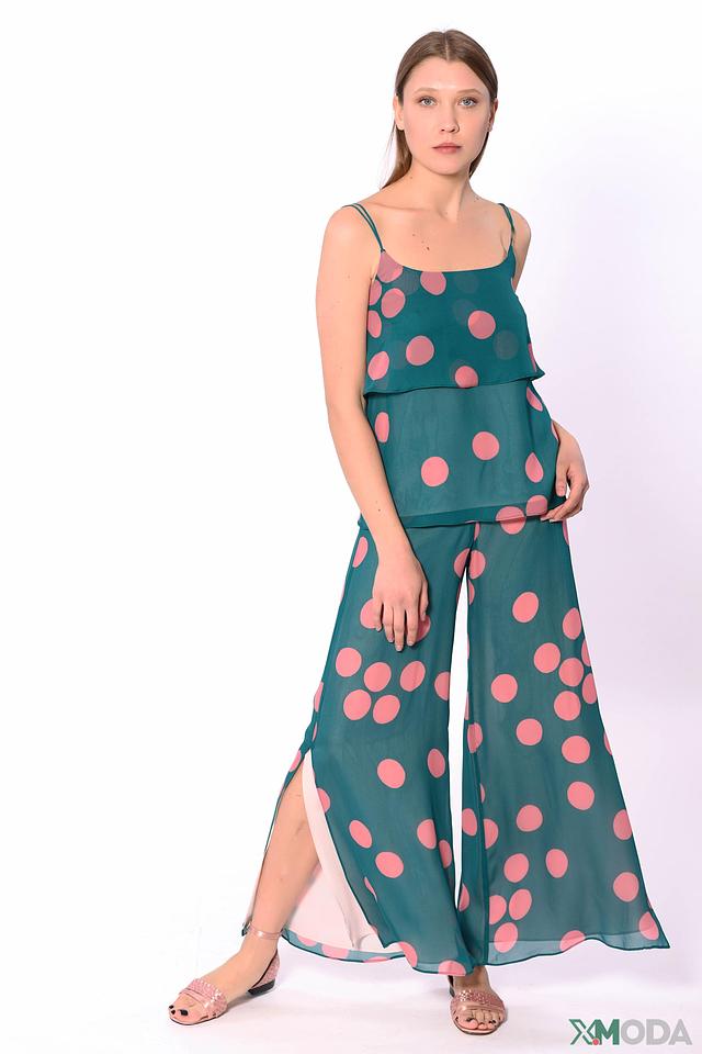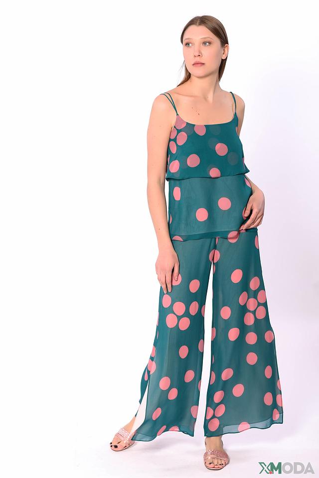 Блуза Penny Black Pink зеленого цвета с розовым горошком – стильное и легкое решение для летнего гардероба. Модель с тонкими бретелями и многослойным дизайном добавит образу воздушности и женственности. Состав: вискоза 100%, Состав_подкладка полиэстер 100%