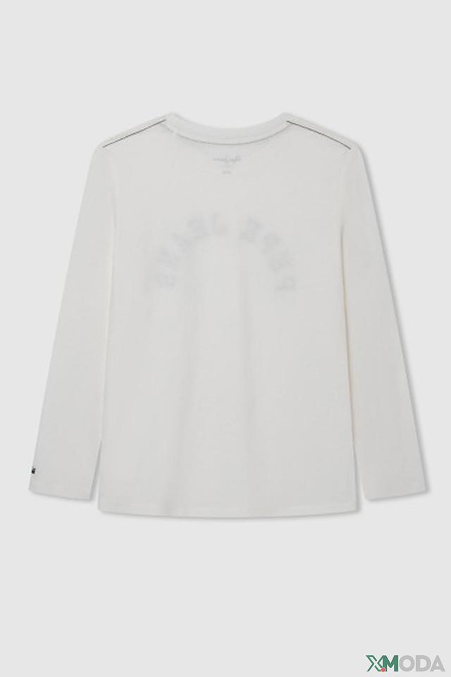 Футболка имеет длинные рукава и классический крой, подходящий для повседневной носки. На груди расположен яркий логотип Pepe Jeans London, выполненный в сине-зелёных тонах, что придает футболке стильный и узнаваемый вид.