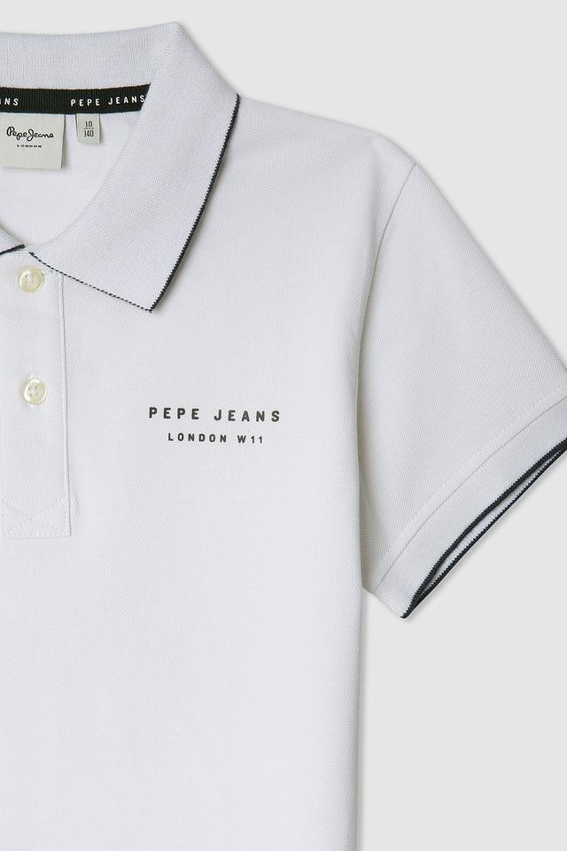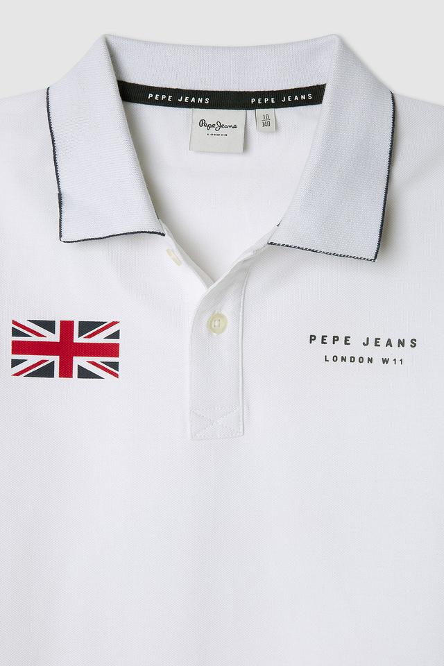 Белое поло Pepe Jeans London для мальчика, украшенное вышивкой в виде британского флага. Классический крой и 100% хлопковый состав обеспечивают комфорт и удобство в повседневной носке. Состав: хлопок 100%