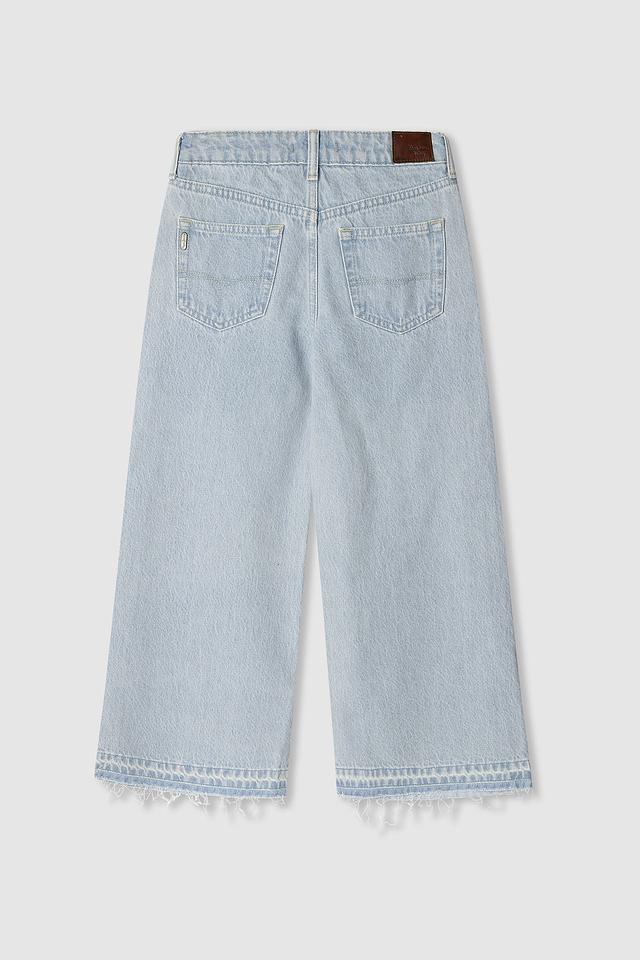 Крой кюлоты обеспечивает свободу движений и комфорт, а необработанный край добавляет оригинальности. Джинсы имеют классическую застежку на молнию и пуговицу, а также удобные карманы спереди и сзади.