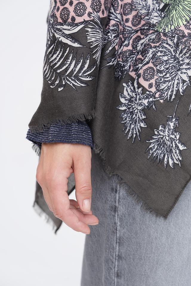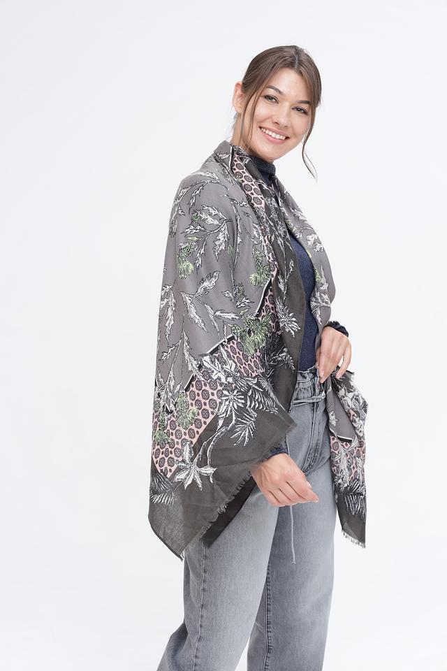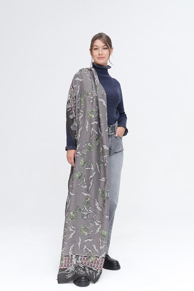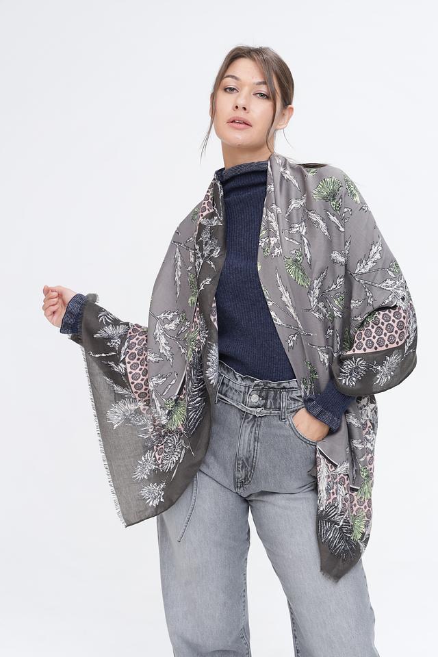 Этот шарф от Pezzo – прекрасный выбор для тех, кто ценит комфорт и стиль. Шарф выполнен в серой цветовой гамме и украшен ярким растительным принтом, который добавит изюминку в ваш образ.