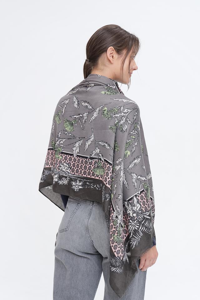 Шарф Pezzo серого цвета с ярким растительным принтом станет стильным дополнением к вашему образу. Изготовлен из мягкой вискозы, обеспечивающей комфорт и приятные ощущения. Идеально подходит для создания многослойных образов. Состав: вискоза 100%