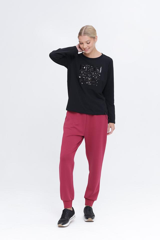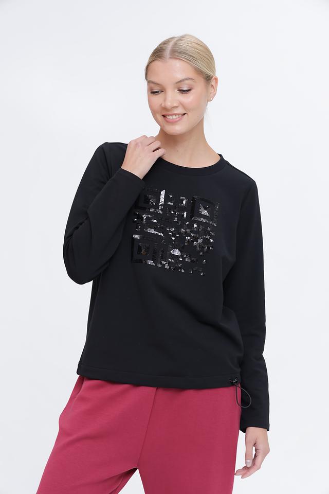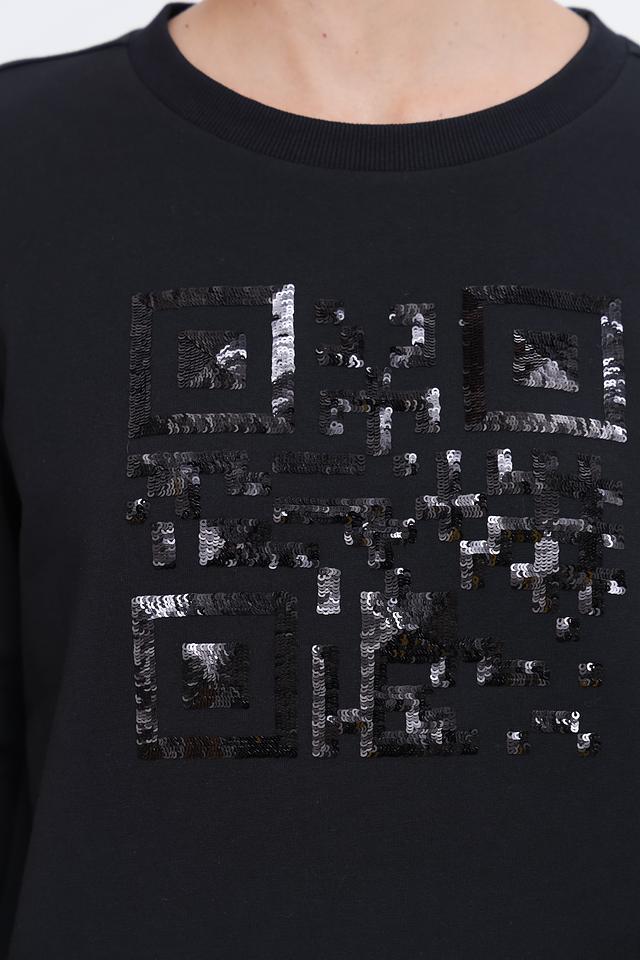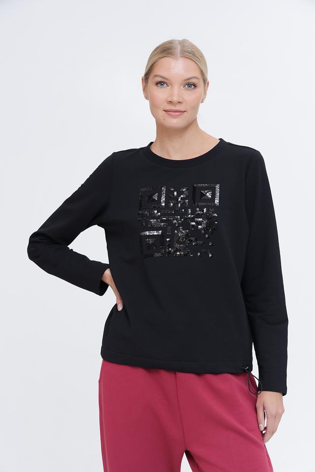 Чёрный пуловер Pezzo с оригинальным декором из страз станет стильным дополнением к вашему гардеробу. Модель выполнена из мягкого и приятного к телу трикотажа, обеспечивающего комфорт в носке. Состав: хлопок 47%, модал 47%, эластан 6%