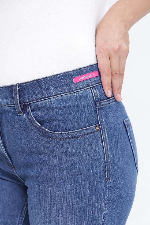 Детали включают в себя классические карманы спереди и сзади, а также аккуратный пояс с пуговицей. Джинсы идеально подходят для создания повседневных образов, сочетаясь с кедами, кроссовками или ботинками. Состав ткани: 59% хлопок, 31% полиэстер, 7% вискоза, 3% спандекс.