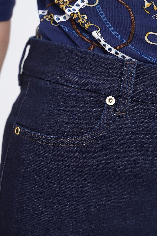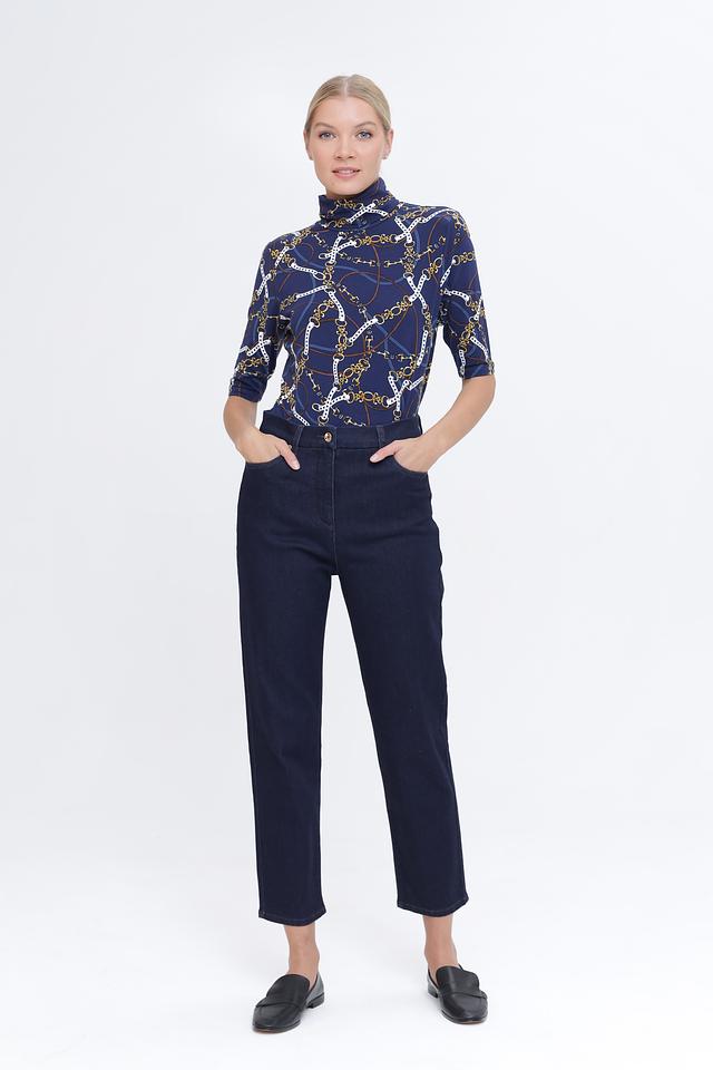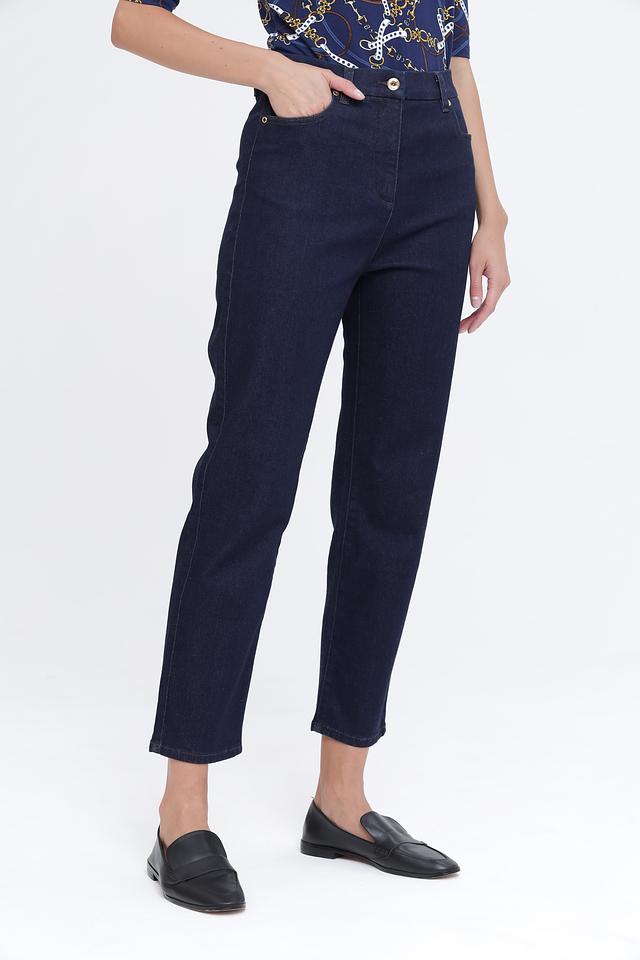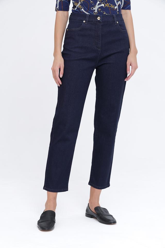 Джинсы имеют прямой крой, обеспечивающий комфортную посадку и свободу движений. Высокая посадка подчеркивает талию и создает элегантный силуэт. Ткань состоит из 80% хлопка, 12% лиоцела, 7% полиэстера и 1% эластана, что обеспечивает мягкость, прочность и небольшую эластичность.