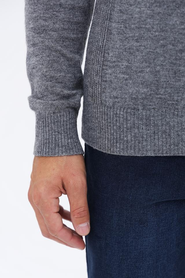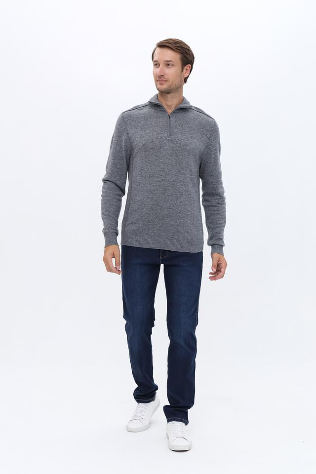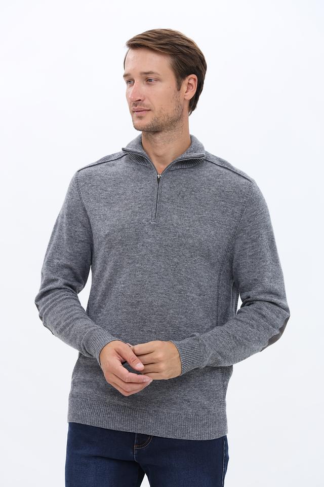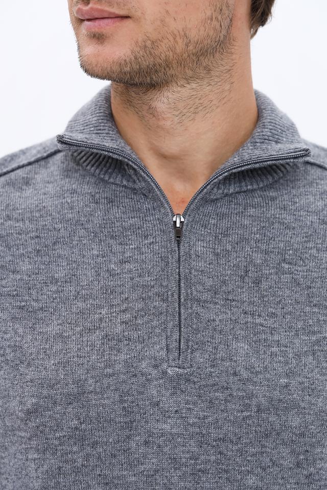 Мужской джемпер от бренда Pezzo выполнен в сером цвете. Модель имеет воротник-стойку с короткой молнией, что придает ей современный вид.