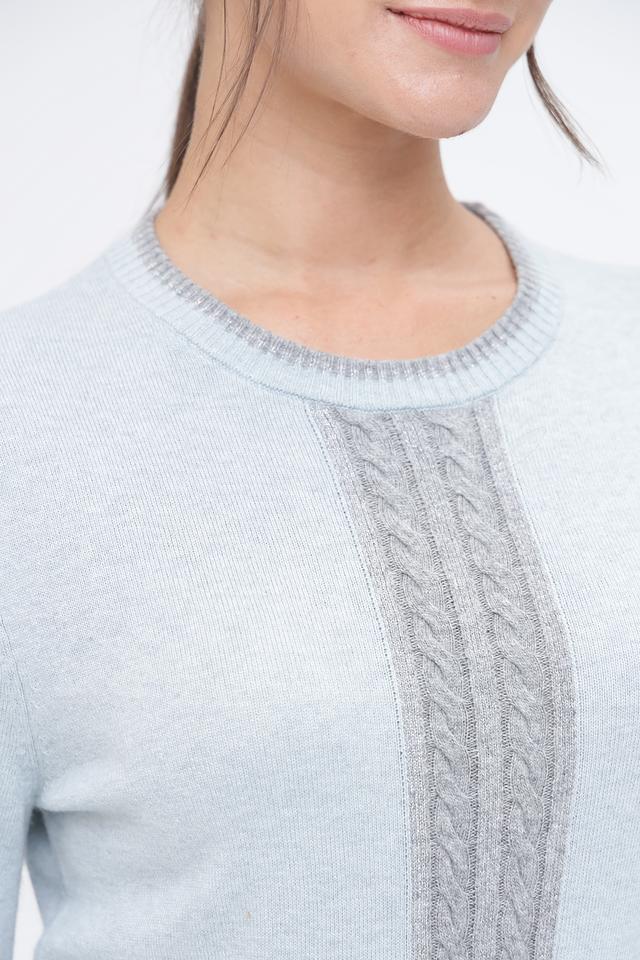 Женский пуловер Pezzo голубого цвета с узором "косы" станет отличным дополнением к вашему гардеробу. Модель выполнена из мягкого и приятного к телу сочетания натуральных и синтетических волокон, обеспечивающих комфорт и долговечность. Состав: вискоза 33%, нейлон 23%, хлопок 20%, шерсть овечья 20%, кашемир 4%