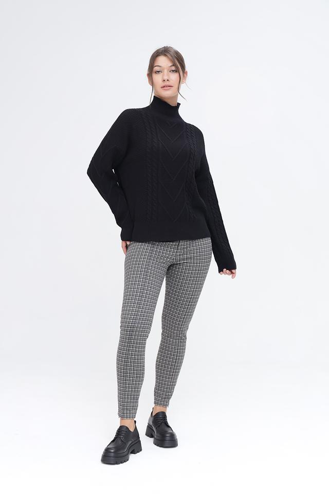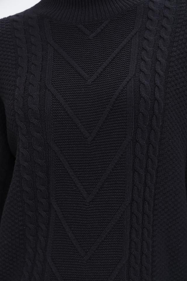 Этот чёрный пуловер от Pezzo – отличный выбор для тех, кто ценит комфорт и стиль. Высокий горловина защищает от холода, а фактурный узор из кос добавляет изделию изысканности.
