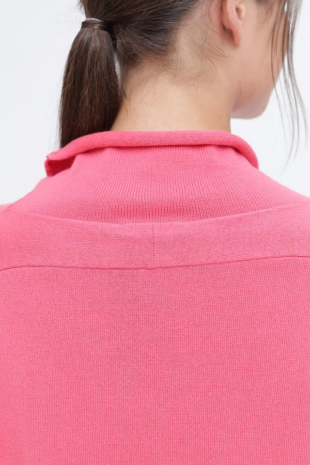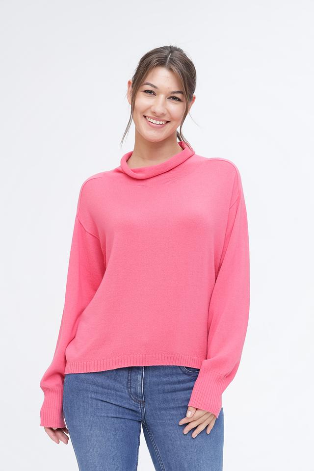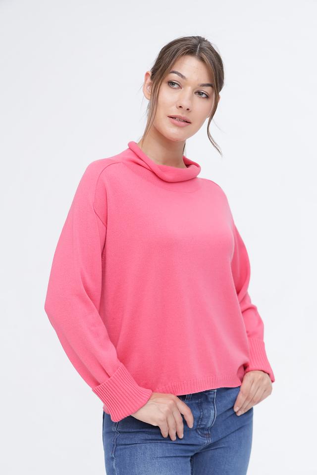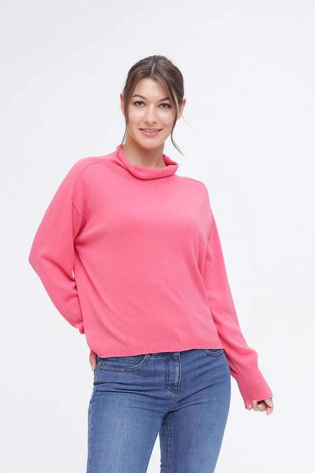 Розовый пуловер Pezzo с горлом – это стильная и комфортная модель на каждый день. Изготовлен из мягкой шерсти и хлопка, обеспечивающих тепло и уют. Идеально сочетается с джинсами и брюками. Состав: шерсть 57%, хлопок 43%
