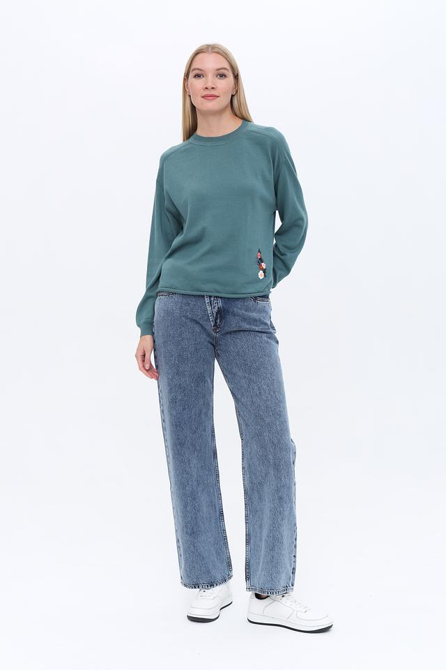 Зелёный пуловер Pezzo с цветочной вышивкой – стильная и комфортная модель для создания повседневных образов. Изготовлен из мягкой смеси шерсти и хлопка, обеспечивающей тепло и удобство. Состав: шерсть 57%, хлопок 43%