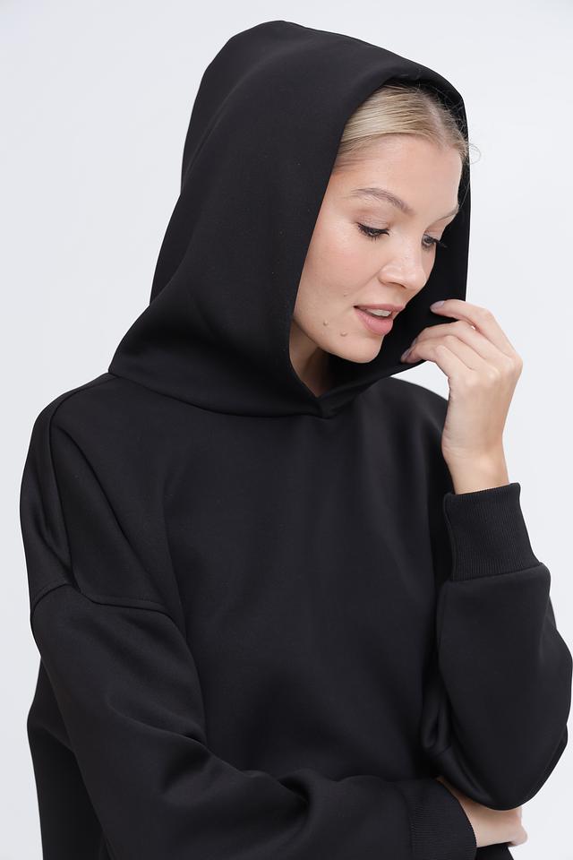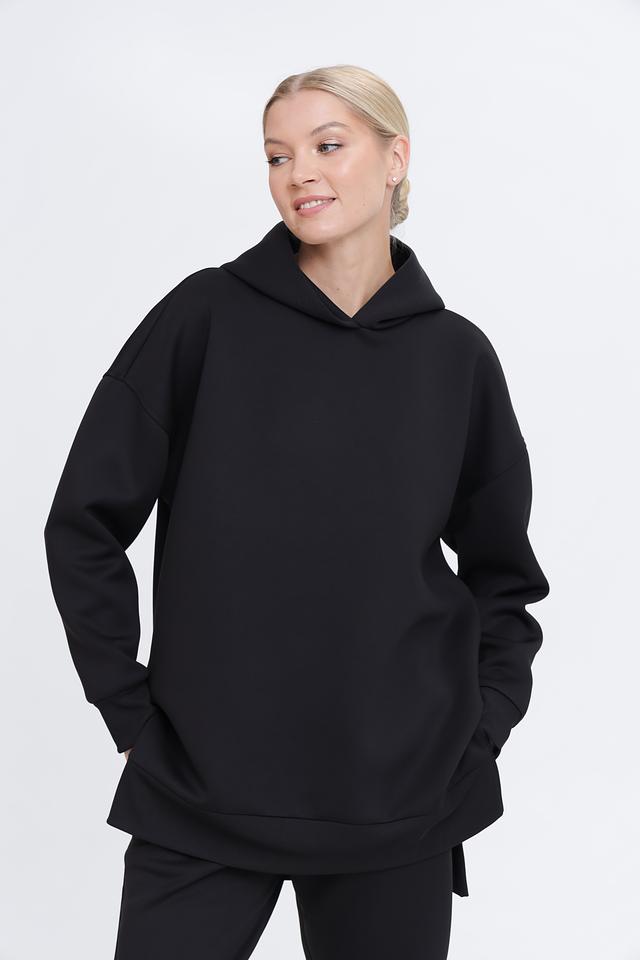 Чёрный пуловер от Pezzo с капюшоном – это комфорт и стиль в одном изделии. Свободный крой и мягкий материал обеспечивают удобную посадку, а минималистичный дизайн делает его универсальным дополнением к любому гардеробу. Состав: полиэстер 96%, эластан 4%