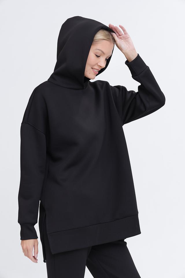 Свободный крой и капюшон делают этот пуловер идеальным для повседневной носки. Он отлично сочетается с джинсами, леггинсами или спортивными брюками, создавая расслабленный и стильный образ.