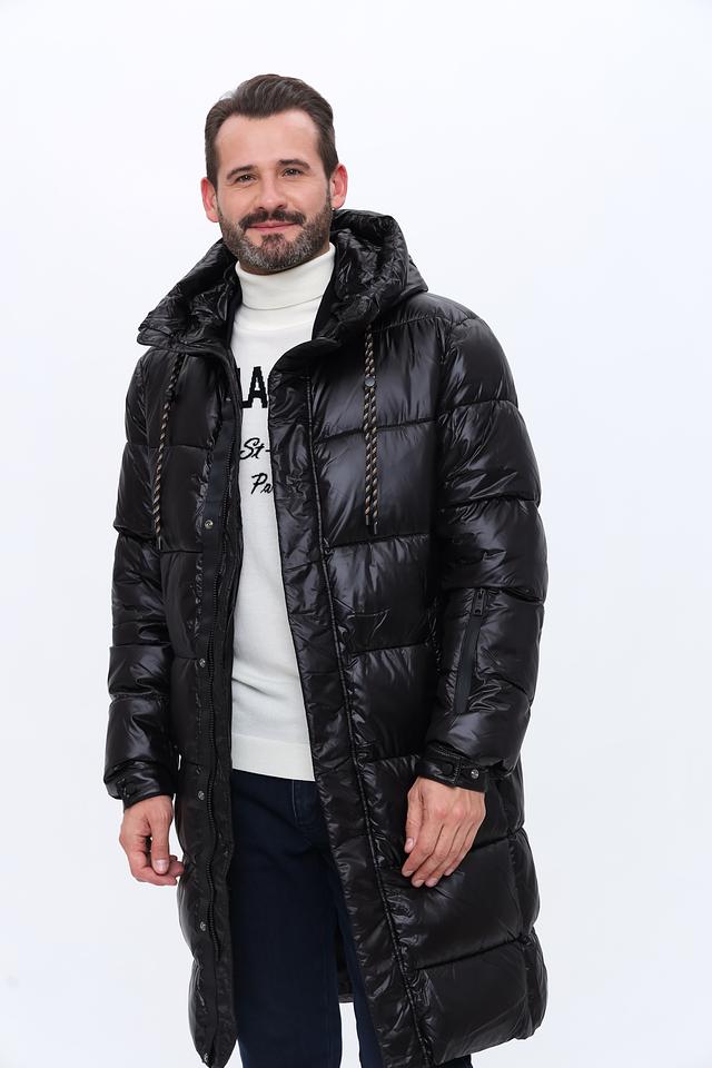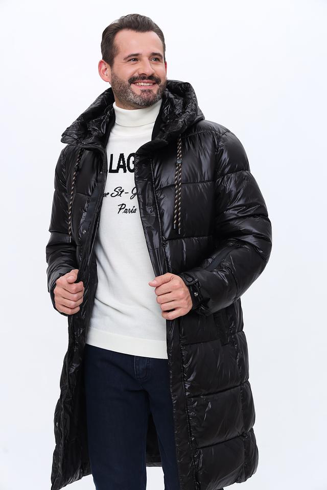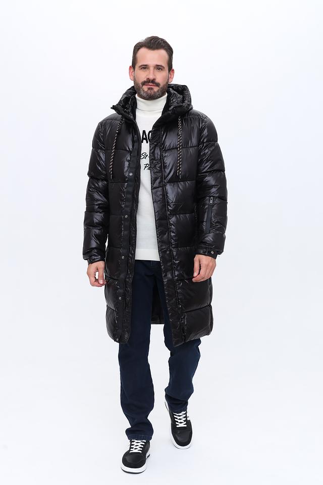 Пальто Pezzo – это современная верхняя одежда для мужчин, выполненная в чёрном цвете. Модель отличается удлиненным кроем, который обеспечивает дополнительную защиту от холода.