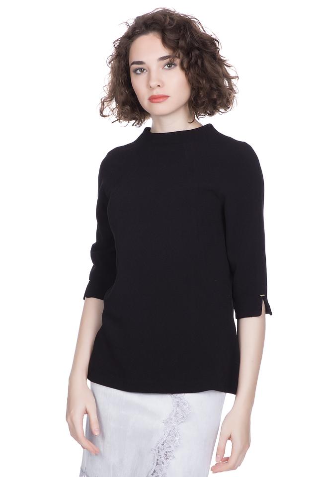 Чёрная блуза Pezzo из полиэстера с добавлением спандекса – это стильное и комфортное решение для создания элегантного образа. Модель имеет короткий рукав 3/4 с разрезом и удобную молнию на спине. Состав: полиэстер 92%, спандекс 8%