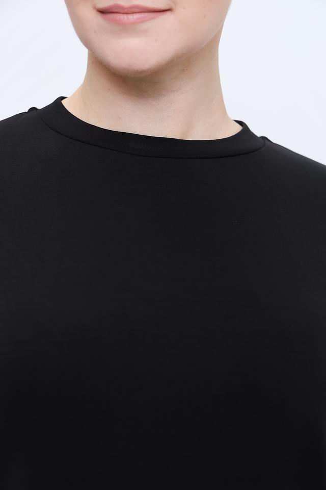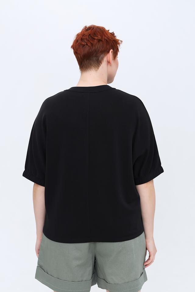 Чёрная футболка Pezzo свободного кроя с короткими рукавами и округлым вырезом горловины. Изготовлена из мягкой и приятной к телу ткани, сочетающей в себе полиэстер, модал и эластан. Состав: полиэстер 48%, модал 48%, эластан 4%