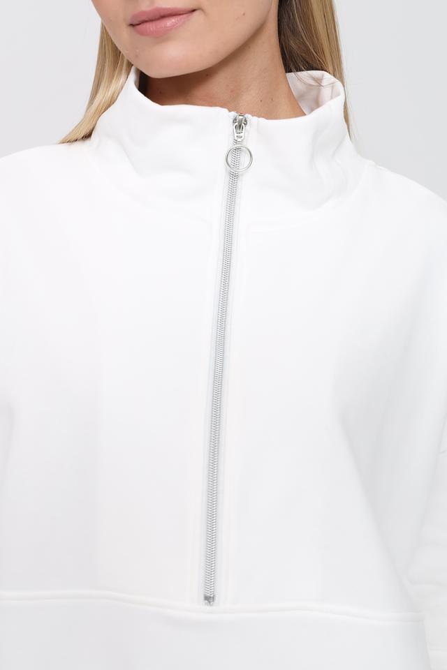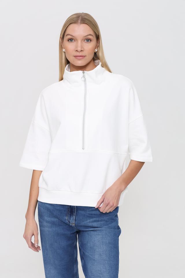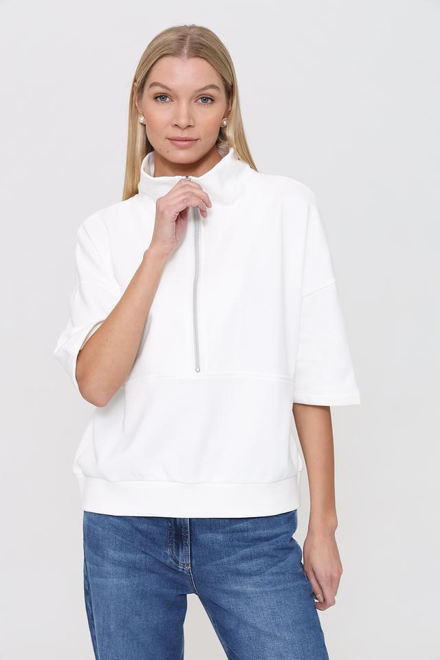 Белый пуловер Pezzo с коротким рукавом и молнией на горловине – стильное и комфортное решение для повседневного образа. Изготовлен из мягкого хлопка с добавлением полиэстера, обеспечивающего удобство в носке. Состав: хлопок 84%, полиэстер 16%