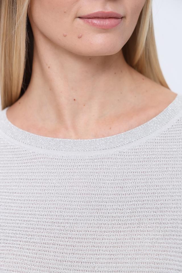 Пуловер изготовлен из высококачественной вискозы, нейлона, полиэстера и металла, что обеспечивает мягкость, комфорт и долговечность изделия. Сочетание материалов позволяет пуловеру хорошо держать форму и не деформироваться после стирки.