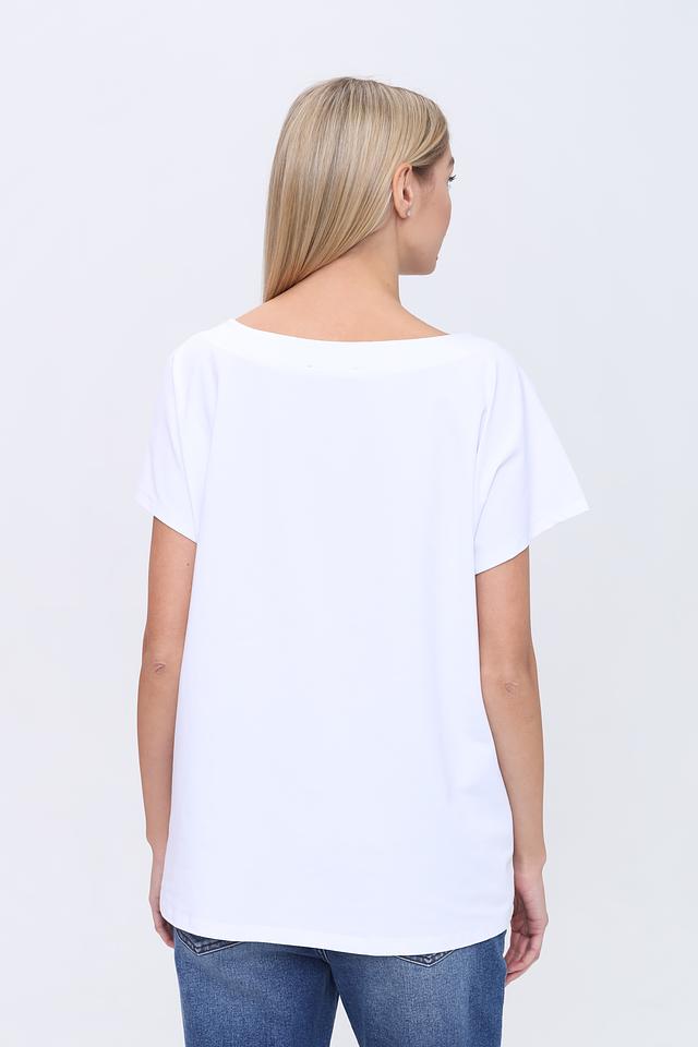 Футболка имеет свободный крой, короткие рукава и округлый вырез горловины. Она идеально подходит для повседневной носки, а также для создания более интересных и стильных образов. Состав ткани: 95% хлопок, 5% эластан.
