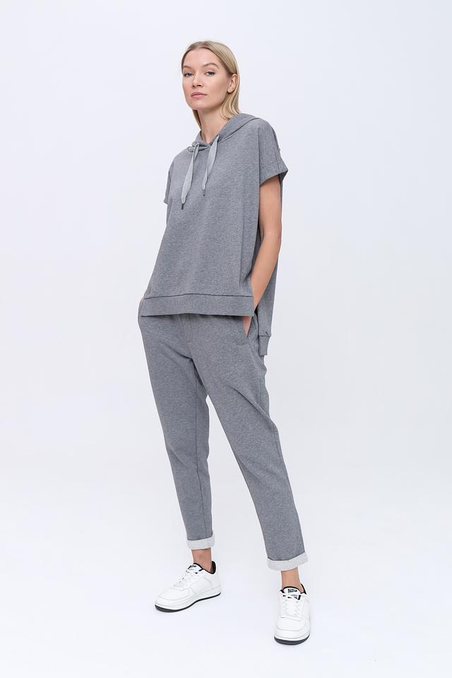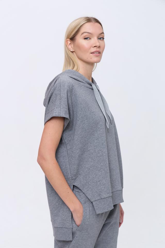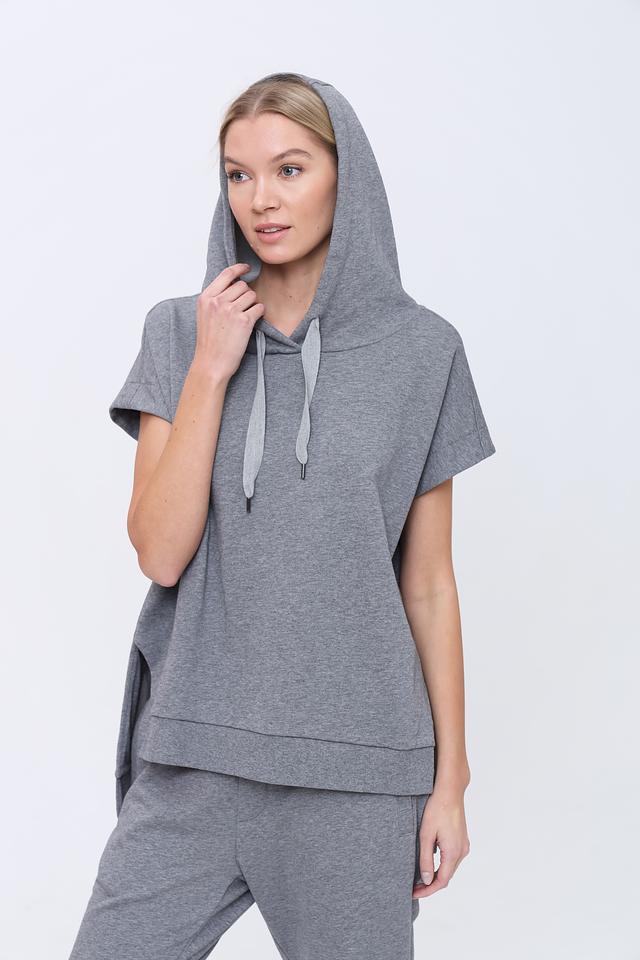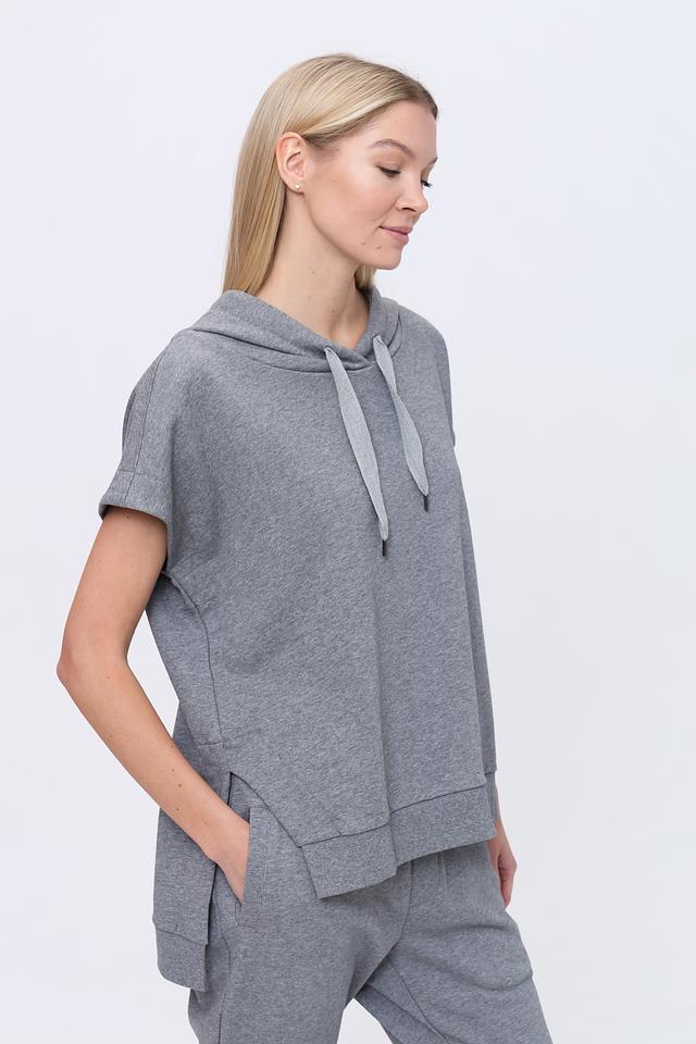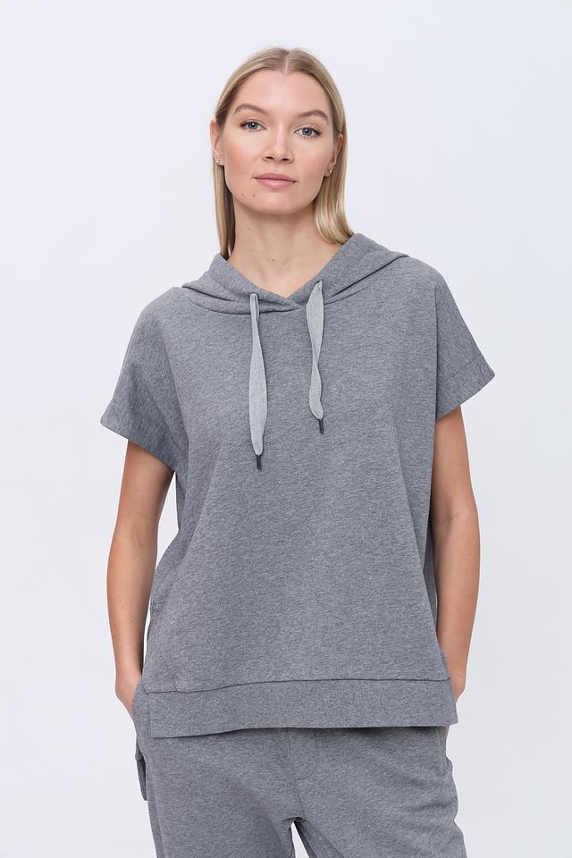 Серый пуловер Pezzo с коротким рукавом и капюшоном – удобная и стильная модель для повседневной носки. Изготовлен из мягкого хлопка, обеспечивающего комфорт в течение всего дня. Состав: хлопок 100%