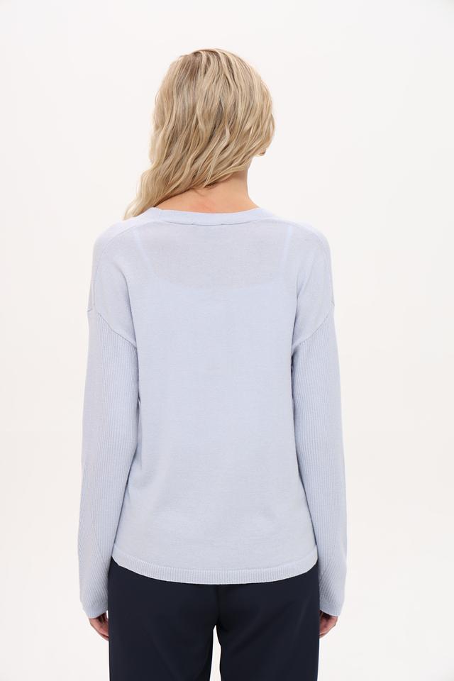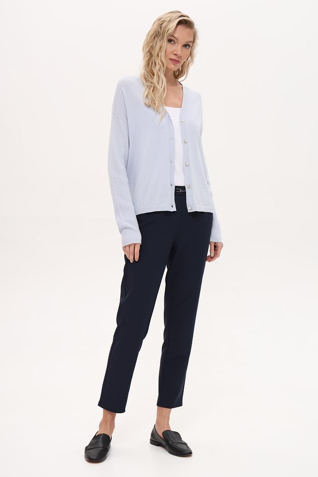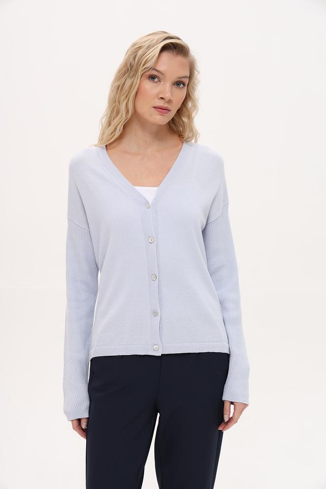 Голубой вязаный жакет Pezzo – это стильное и комфортное решение для создания повседневных образов. Модель выполнена из мягкой пряжи с добавлением шерсти и хлопка, имеет V-образный вырез и застегивается на пуговицы. Состав: шерсть 57%, хлопок 43%