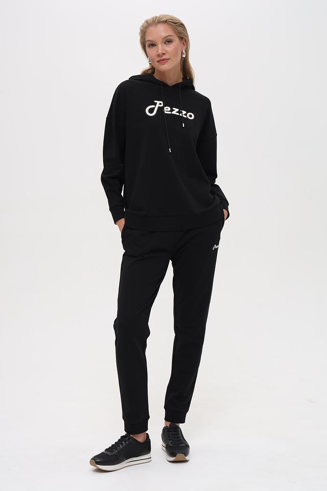 Чёрная толстовка Pezzo из 100% хлопка с белым логотипом бренда. Удобный крой и мягкий материал обеспечивают комфорт в повседневной носке. Состав: хлопок 100%