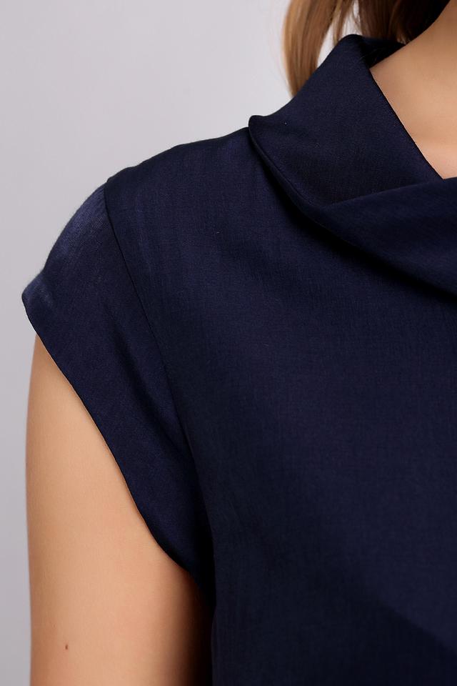 Синяя блуза Pezzo с воротником-стойкой и короткими рукавами. Изготовлена из сочетания полиэстера и вискозы, обеспечивающих комфорт и приятные тактильные ощущения. Отличный выбор для создания стильного и элегантного образа. Состав: полиэстер 55%, вискоза 45%