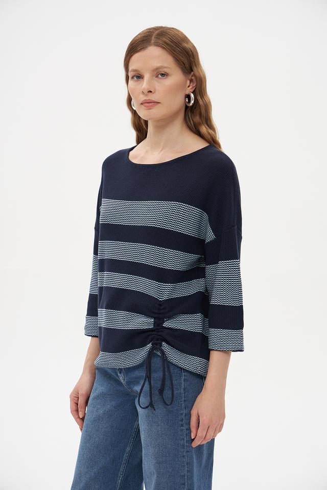 Пуловер Pezzo синий с голубыми полосками и кулиской