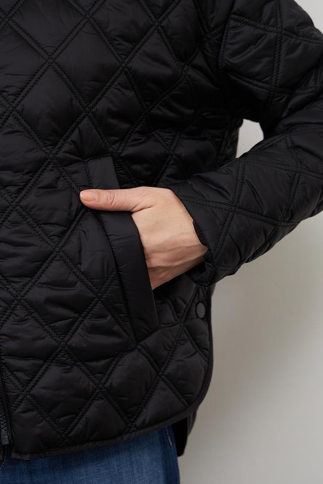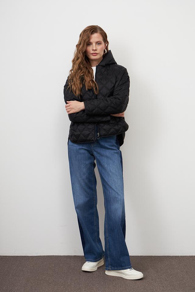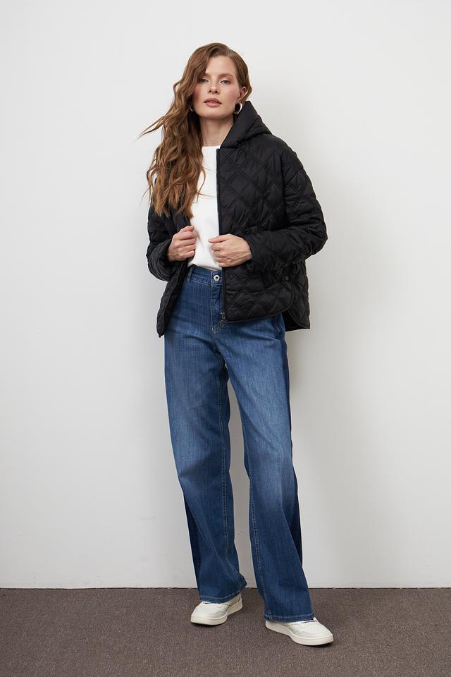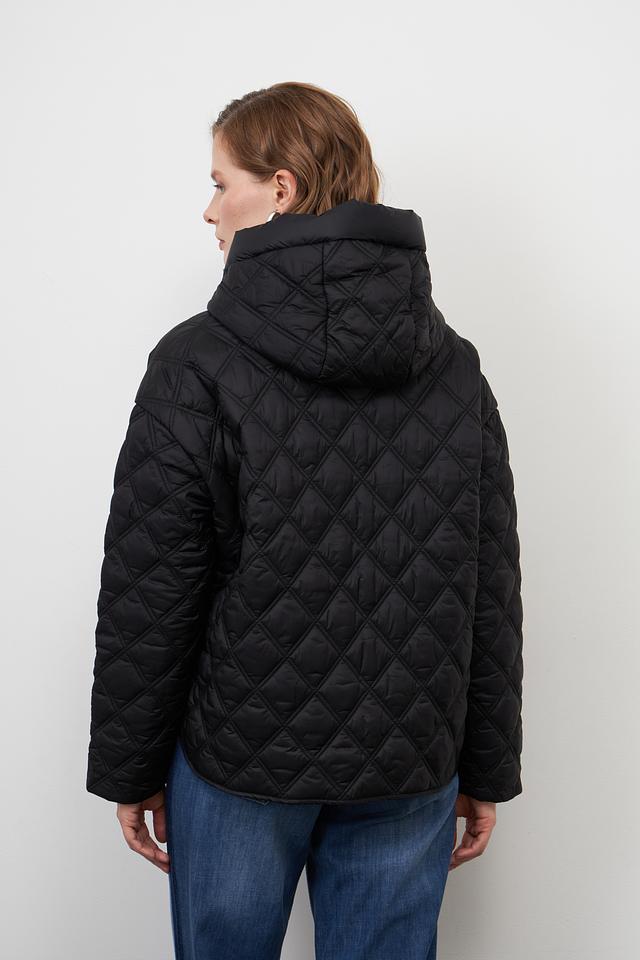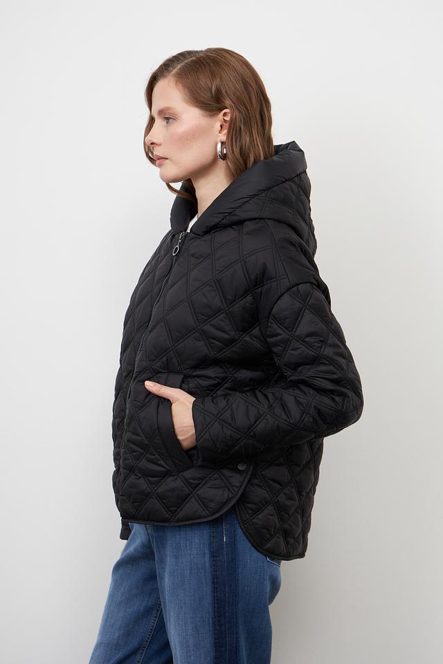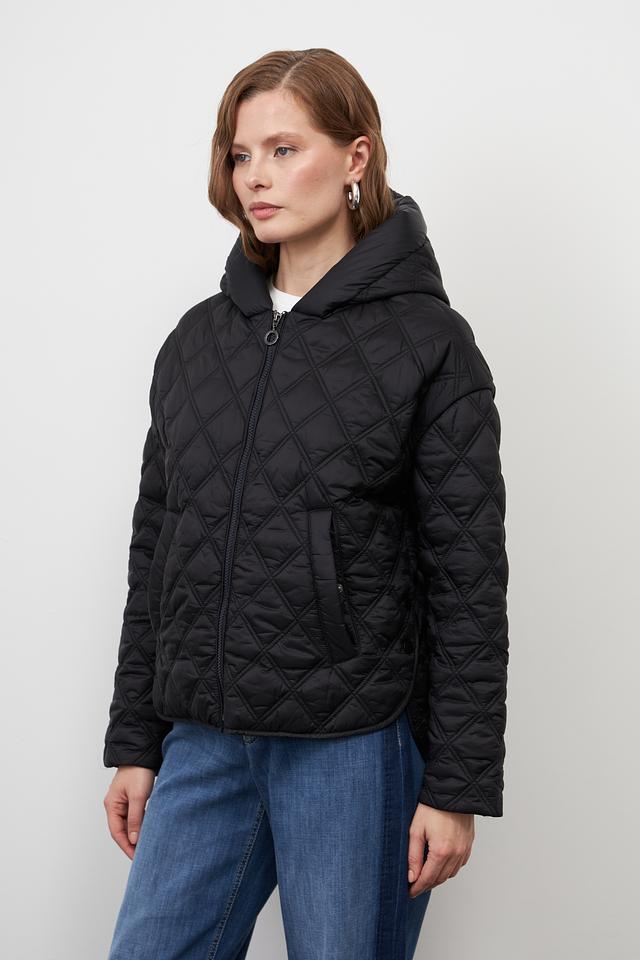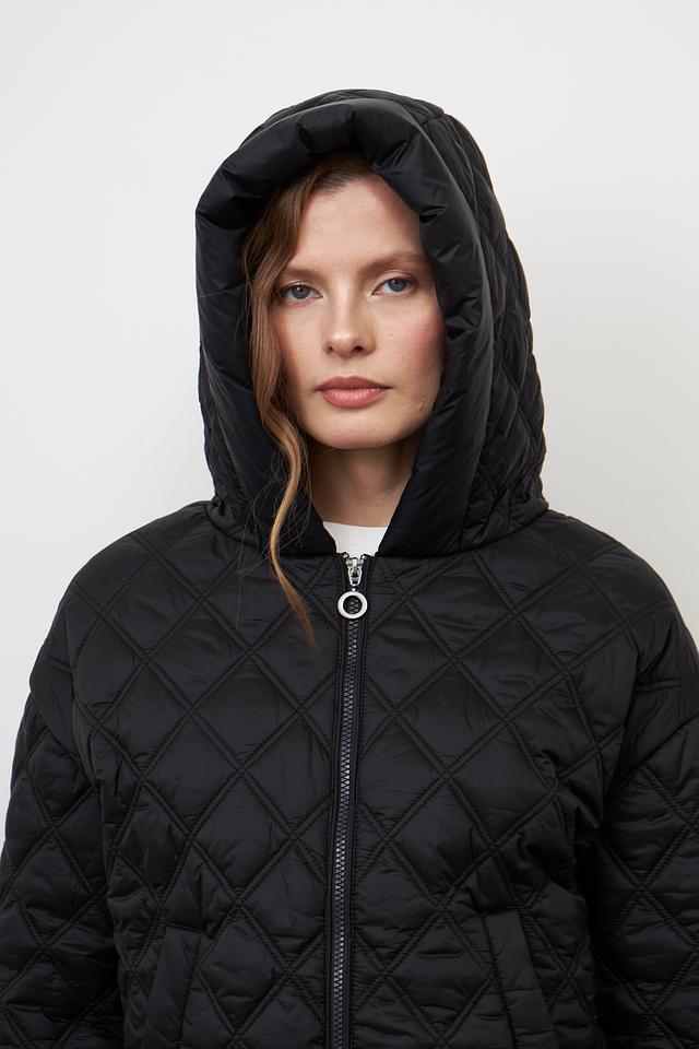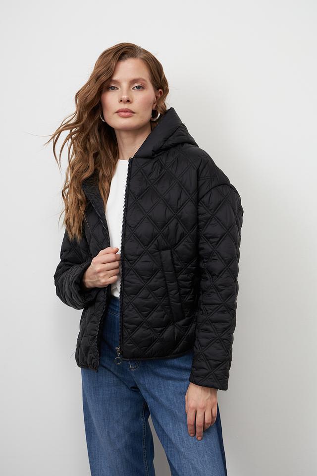Куртка имеет стеганую текстуру, которая придает ей современный вид. Модель оснащена удобным капюшоном и застегивается на молнию. Два боковых кармана позволяют удобно хранить необходимые мелочи.