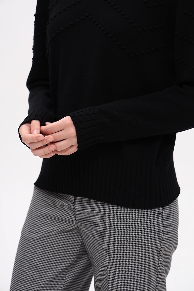 Универсальный чёрный цвет позволяет легко комбинировать пуловер с другими элементами гардероба, а качественный материал обеспечивает комфорт и долговечность изделия.