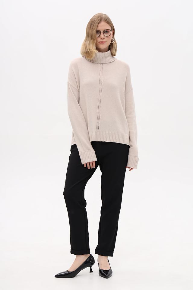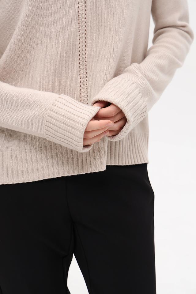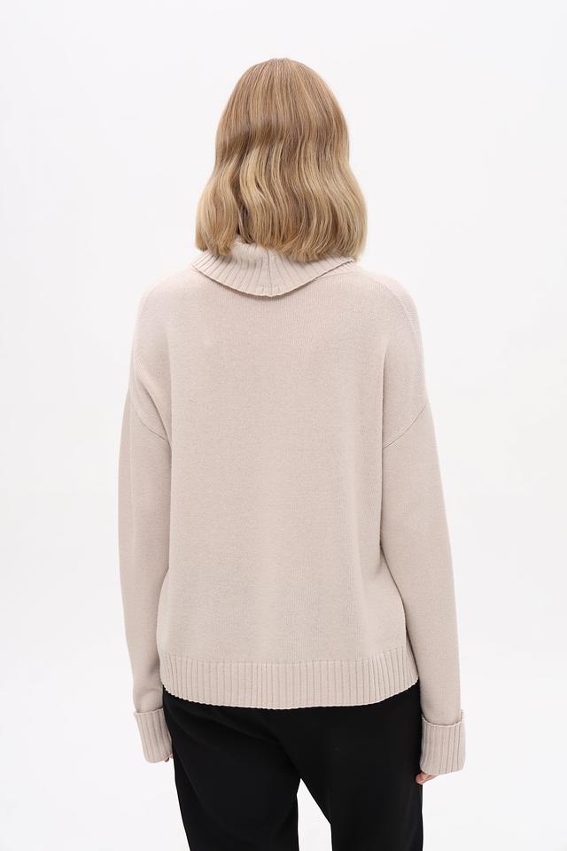 Базовый бежевый цвет легко сочетается с другими элементами одежды, позволяя создавать разнообразные образы. Этот пуловер станет универсальной вещью в вашем гардеробе, подходящей для работы, отдыха и встреч с друзьями.