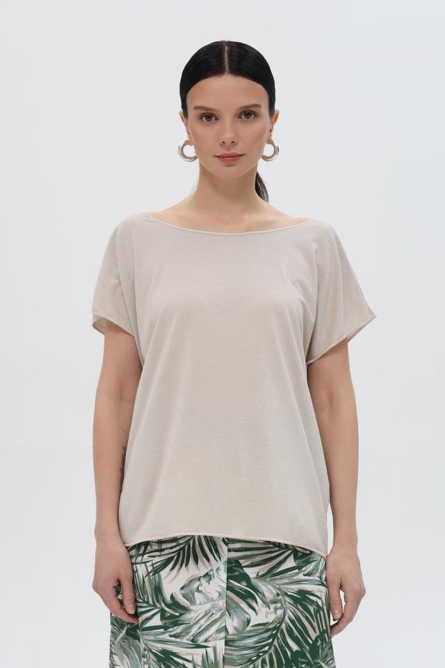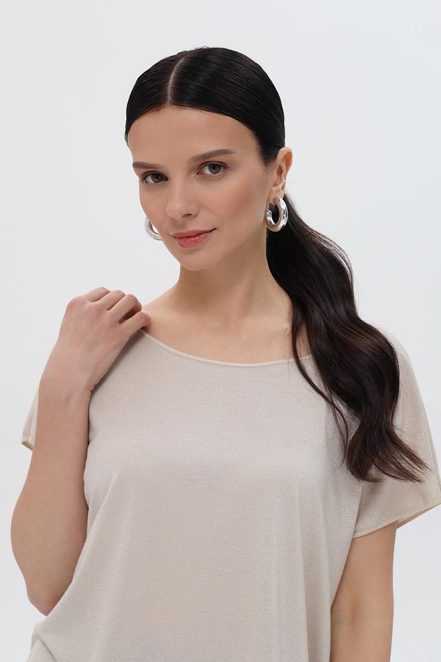 Бежевая футболка Pezzo свободного кроя с коротким рукавом и округлым вырезом. Изготовлена из мягкой вискозы с добавлением полиэстера и эластана для комфорта и хорошей посадки. Состав: вискоза 77%, полиэстер 21%, эластан 2%