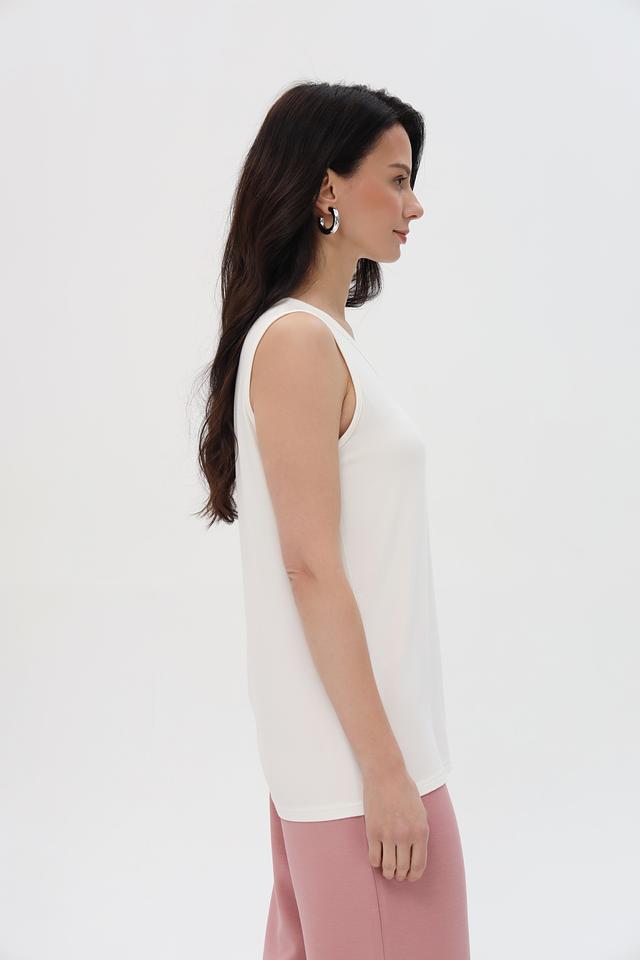 Состав ткани – 93% вискоза и 7% эластан – обеспечивает приятные тактильные ощущения и хорошую посадку по фигуре. Эта майка идеально подходит для создания как повседневных, так и более элегантных образов.