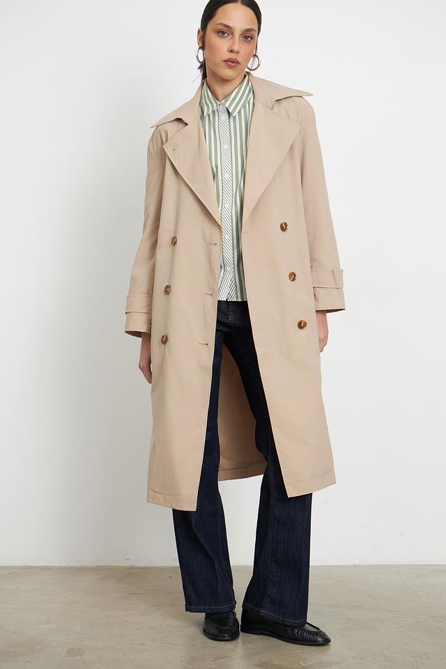 Этот плащ от Pezzo станет незаменимой вещью в вашем гардеробе в переходный сезон. Классический тренчкот выполнен в бежевом цвете, который легко сочетается с любой одеждой.