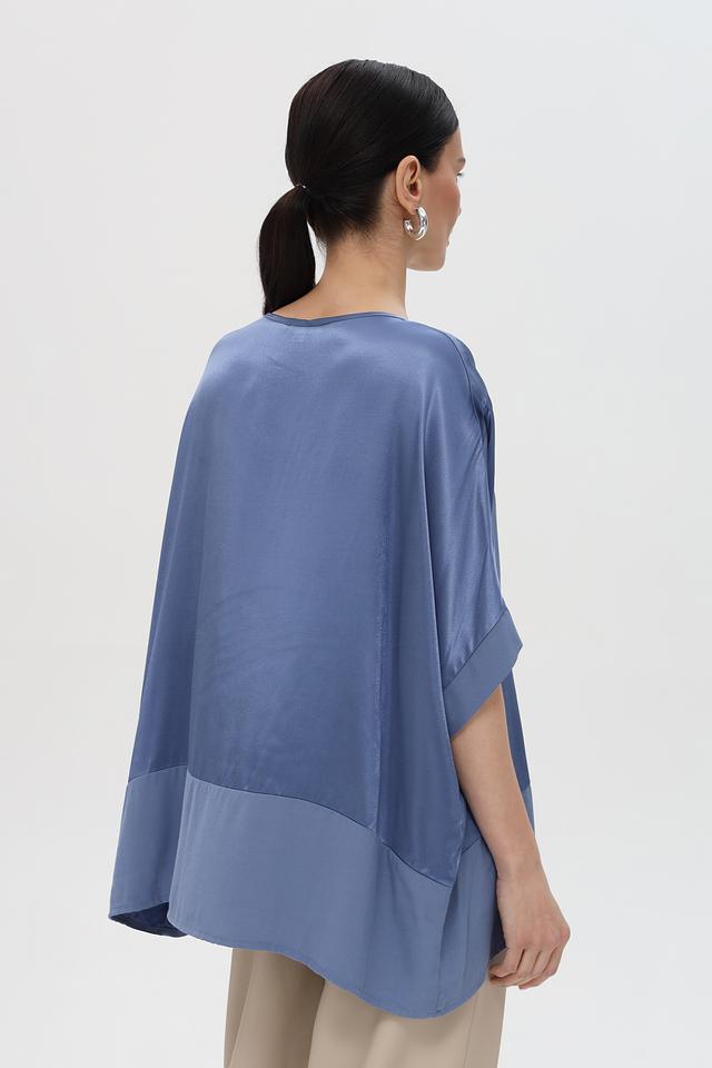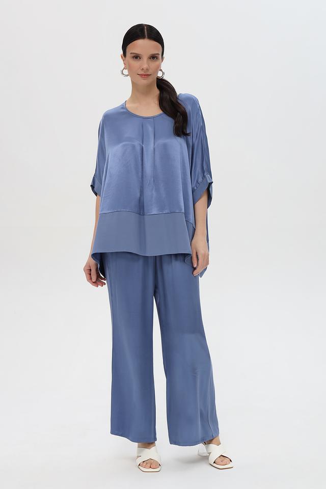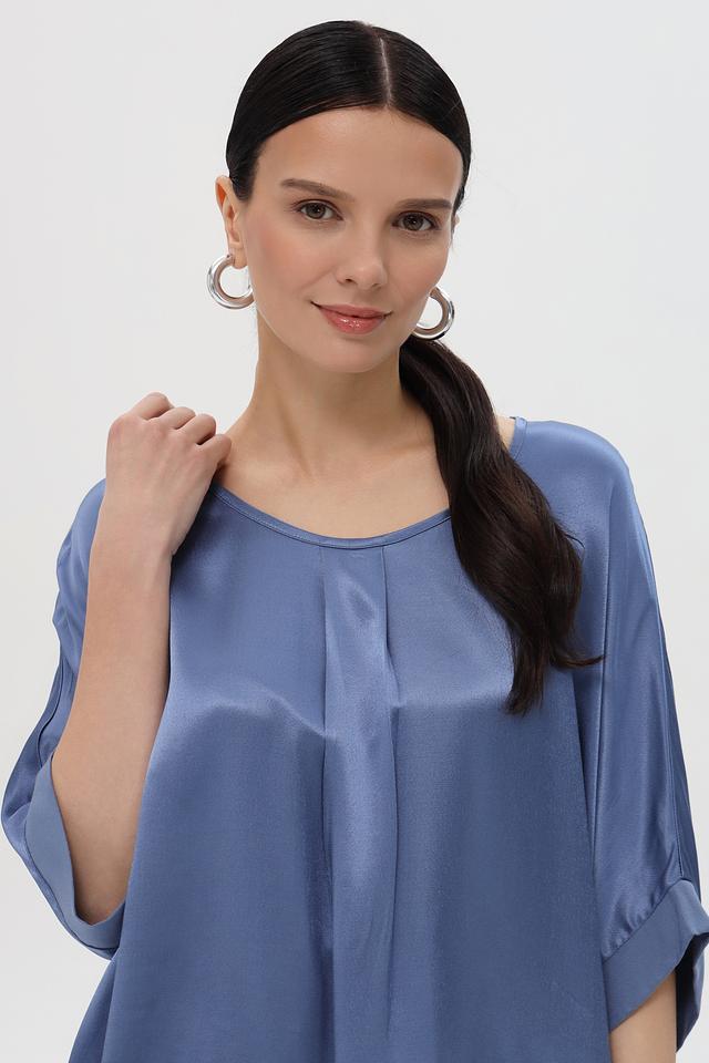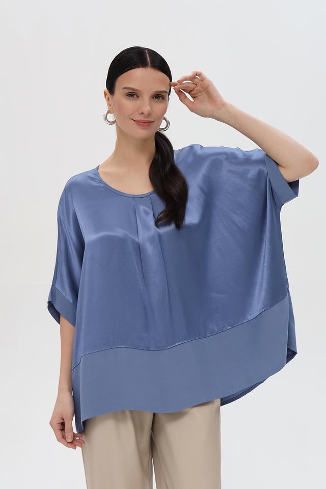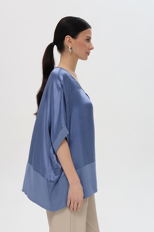 Голубая блуза Pezzo из атласной ткани станет отличным дополнением к вашему гардеробу. Модель свободного кроя с короткими рукавами и асимметричным низом подчеркнет ваш стиль и индивидуальность. Состав: вискоза 58%, район 42%