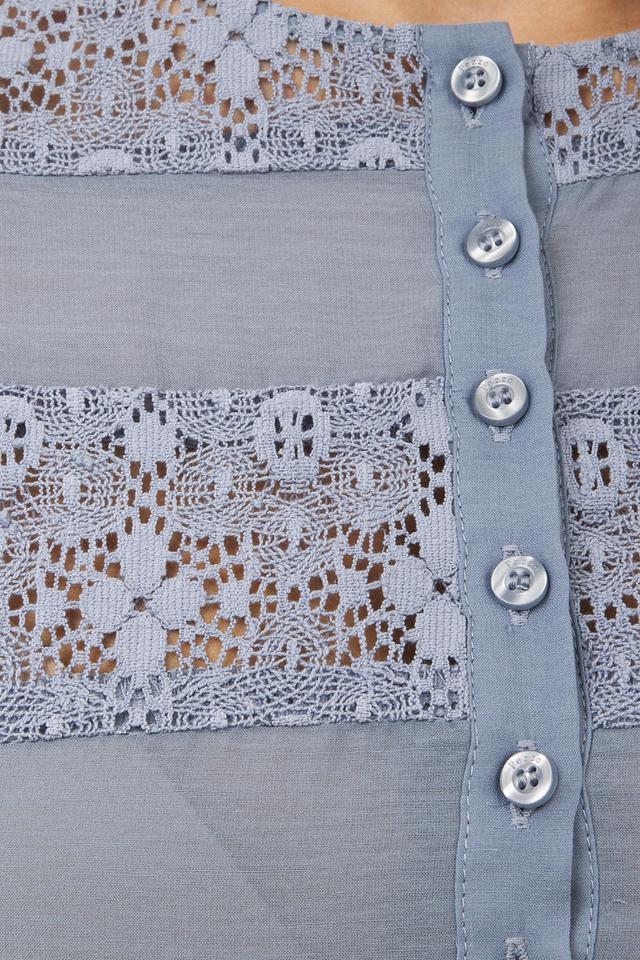 Голубая блуза Pezzo с изящным кружевным декором станет отличным дополнением к вашему гардеробу. Модель выполнена из сочетания хлопка и полиэстера, что обеспечивает комфорт и практичность. Состав: полиэстер 50%, хлопок 50%