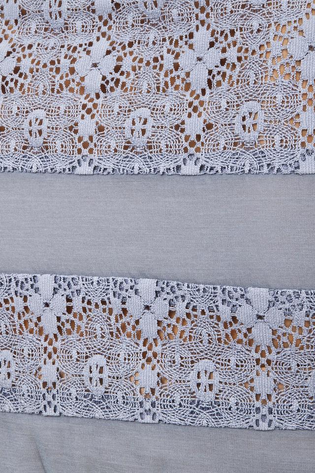 Особенностью модели является кружевная отделка на плечах и груди, которая придает ей женственность и изысканность. Застежка выполнена на пуговицы по всей длине переда. Состав ткани: 50% полиэстер, 50% хлопок, что обеспечивает комфорт в носке и простоту ухода.