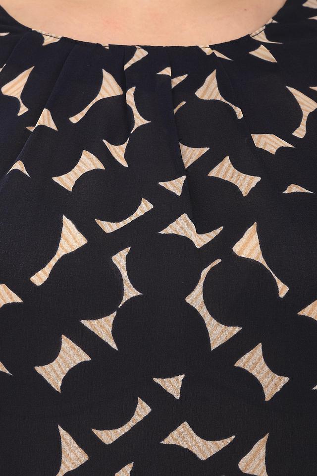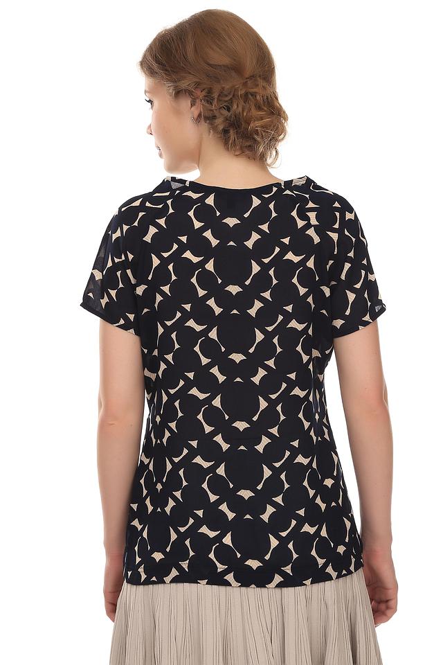 Блуза Pezzo черного цвета с оригинальным бежевым геометрическим принтом станет отличным дополнением к вашему гардеробу. Модель выполнена из легкой ткани и имеет короткие рукава. Состав: полиэстер 100%