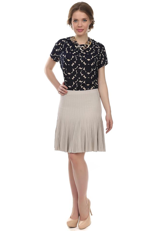 Модель имеет прямой крой, короткие рукава и круглый вырез горловины. Блуза изготовлена из 100% полиэстера, что обеспечивает легкость, комфорт и простоту в уходе.