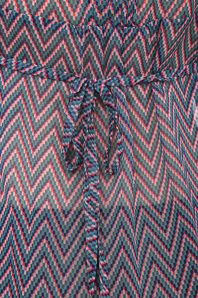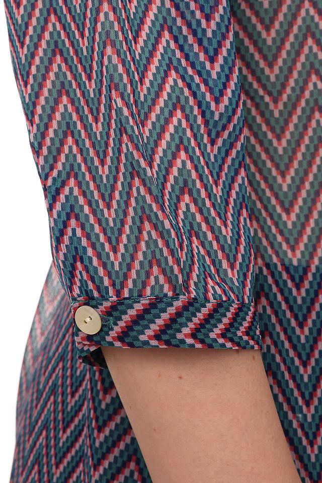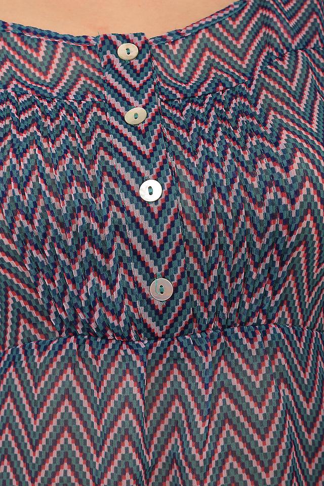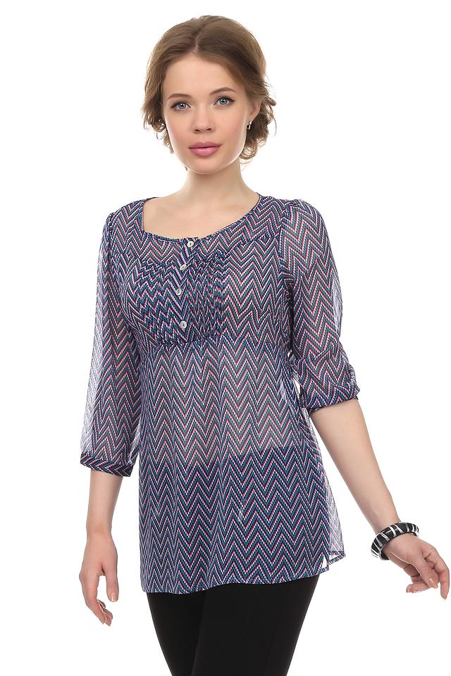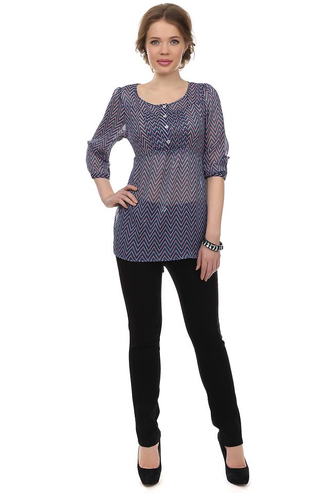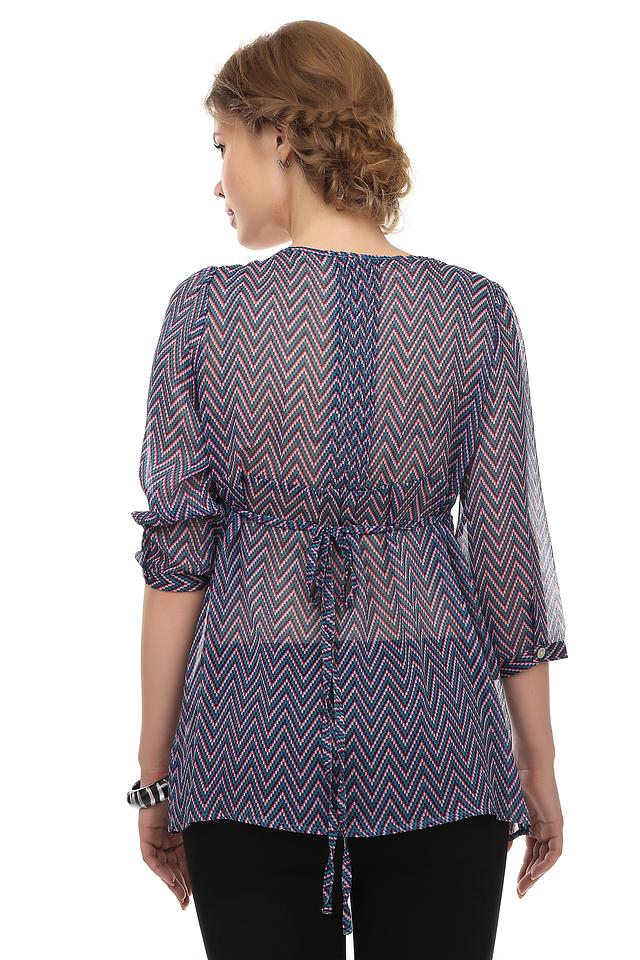 Эта стильная блуза от Pezzo станет прекрасным дополнением к вашему гардеробу. Блуза выполнена в синем цвете и украшена ярким геометрическим принтом в виде зигзага, выполненным в красных и белых тонах.