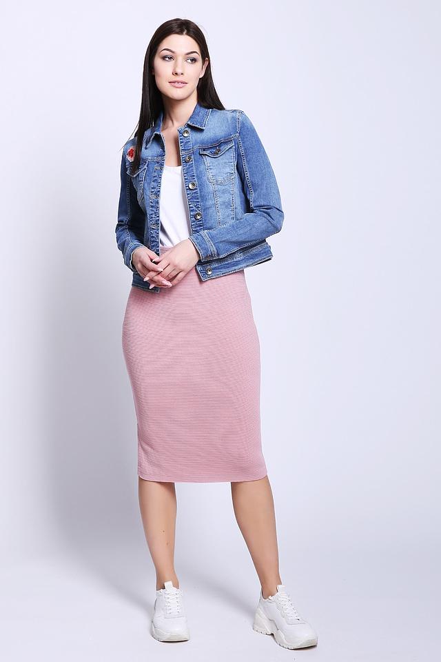 Юбка Pezzo нежно-розового цвета в полоску – это стильное и комфортное решение для создания повседневного образа. Приталенный силуэт и небольшой разрез сзади добавляют изысканности. Изготовлена из приятной к телу ткани. Состав: вискоза 50%, хлопок 33%, полиамид 17%
