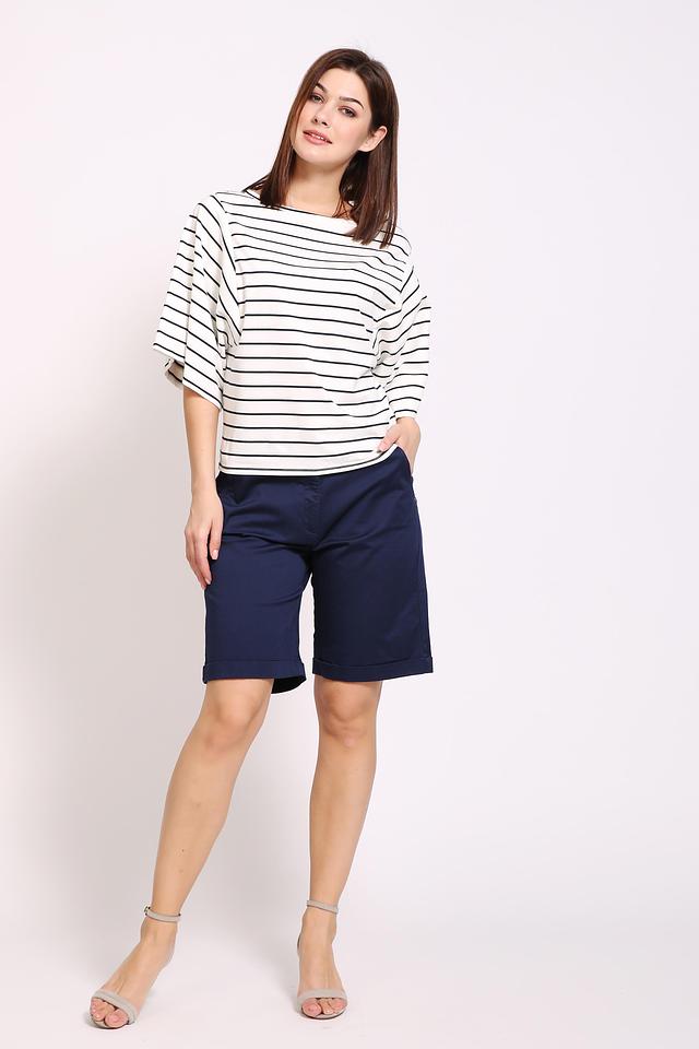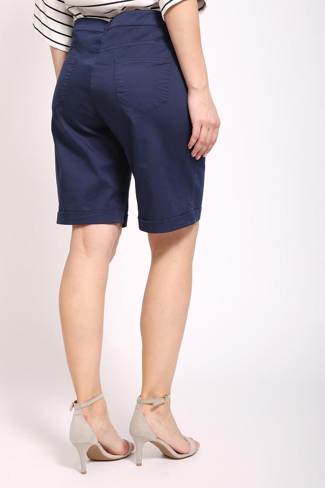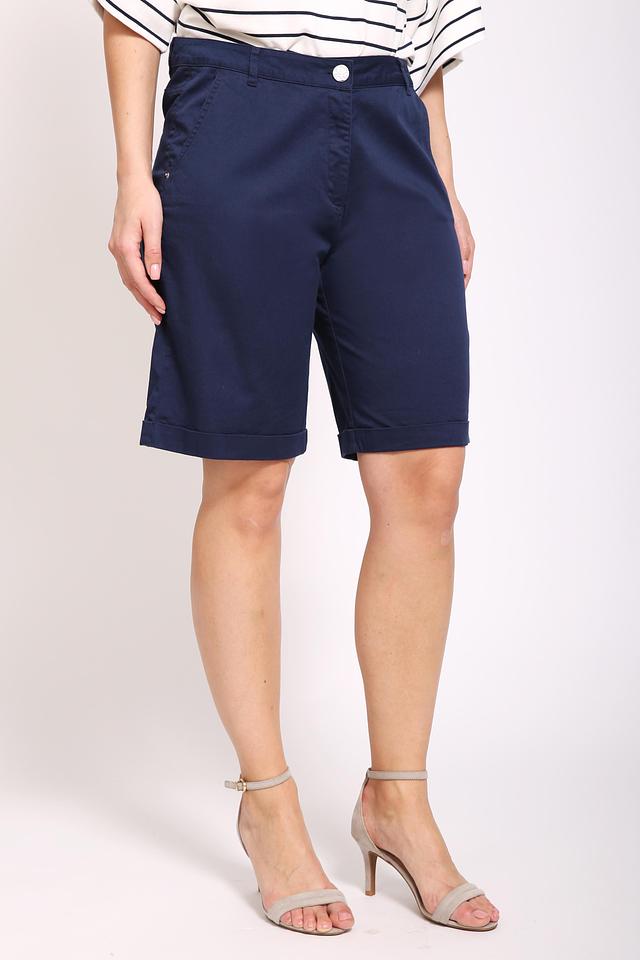 Шорты оснащены удобным поясом с пуговицей и петлями для ремня. На передней части расположены функциональные карманы, а сзаду – накладные карманы с декоративной отделкой. Состав ткани: хлопок 97%, эластан 3%.