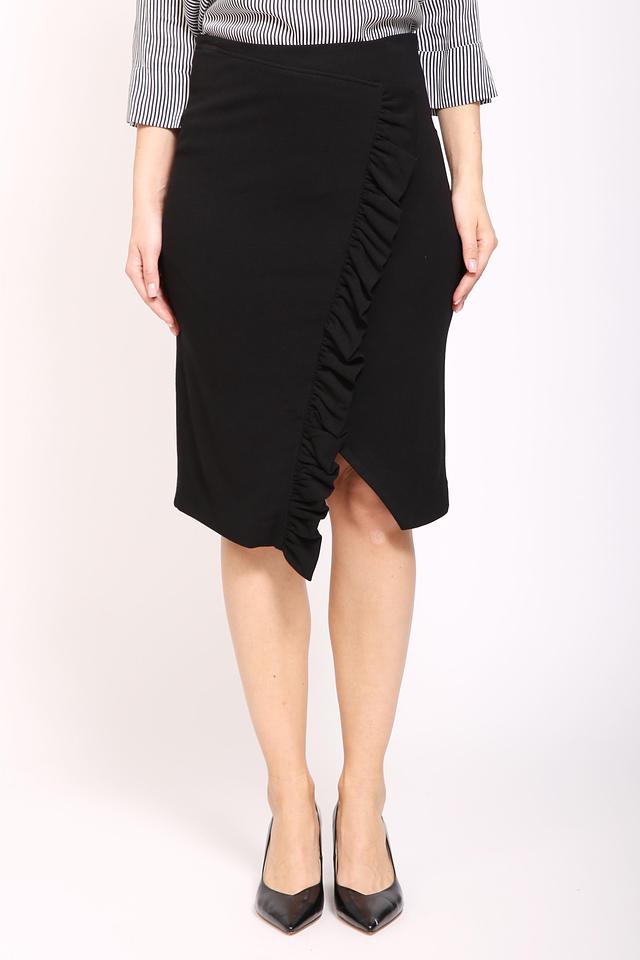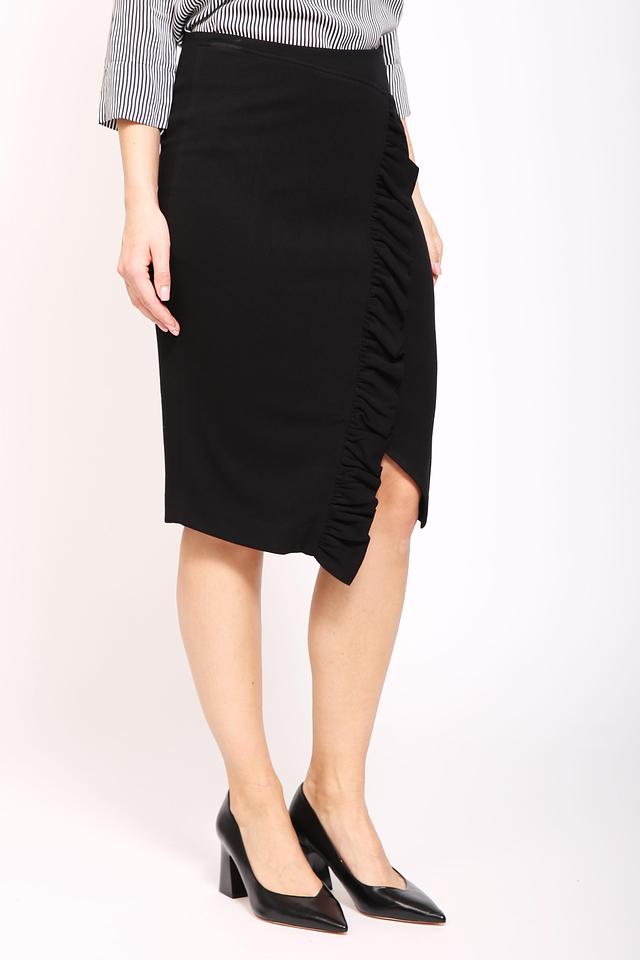 Чёрная юбка Pezzo миди с асимметричным кроем и декоративными рюшами. Модель выполнена из мягкой и приятной к телу ткани, обеспечивающей комфорт в носке. Состав: вискоза 69%, полиэстер 28%, спандекс 3%