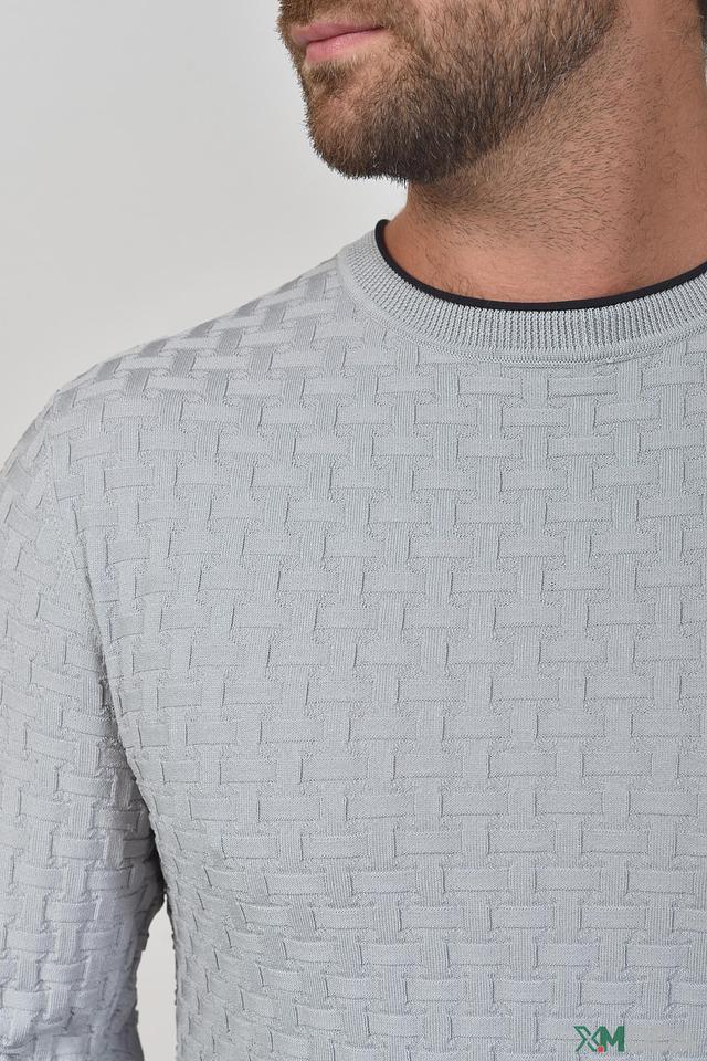 Мужской джемпер от бренда Pezzo выполнен в сером цвете и отличается необычной текстурой, напоминающей плетёную ткань. Модель имеет круглый вырез горловины и длинные рукава.