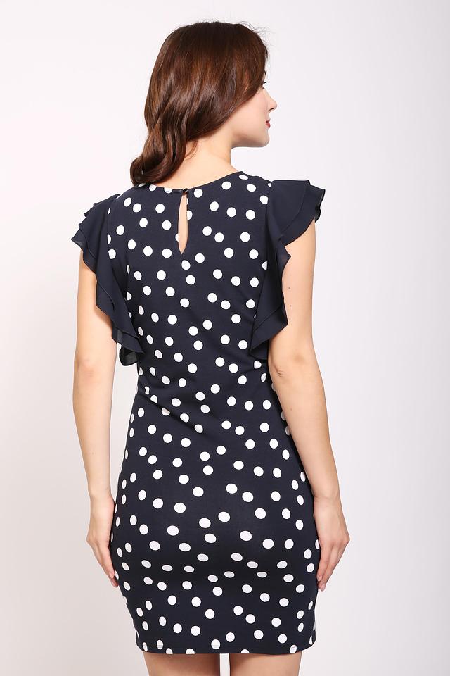 Это платье от бренда Pezzo выполнено в классическом чёрном цвете с контрастным белым горошком. Модель имеет приталенный силуэт, который выгодно подчеркивает фигуру, и длину мини, что делает его идеальным выбором для летних образов.