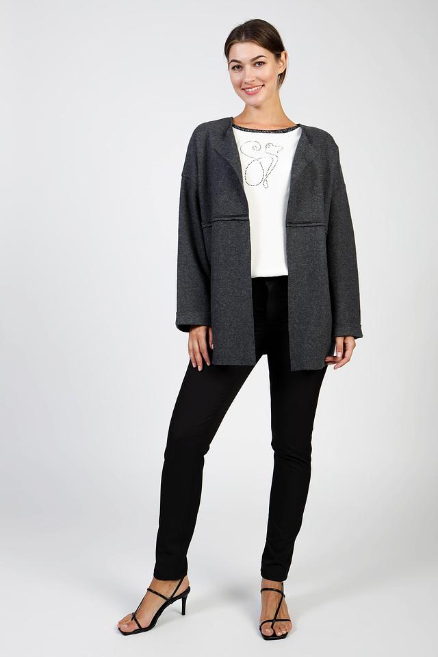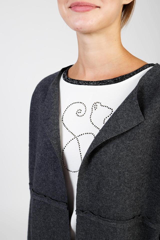Кардиган выполнен в сером цвете, который легко сочетается с различными элементами одежды. Он идеально подойдет для повседневной носки, а также для создания более формальных образов. Прекрасно дополнит базовый гардероб.
