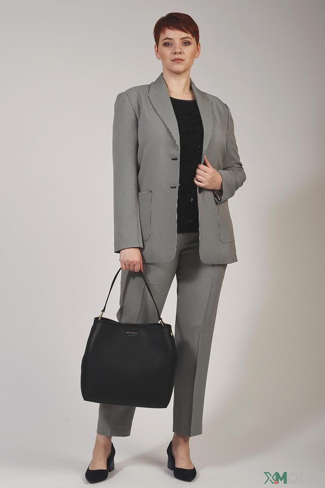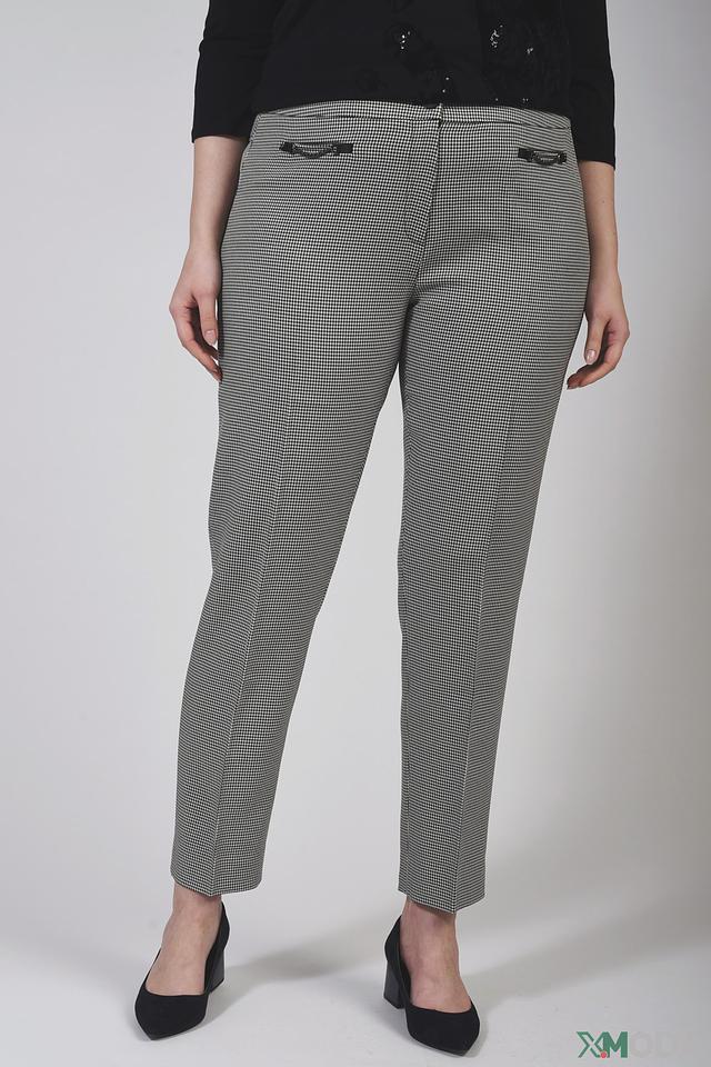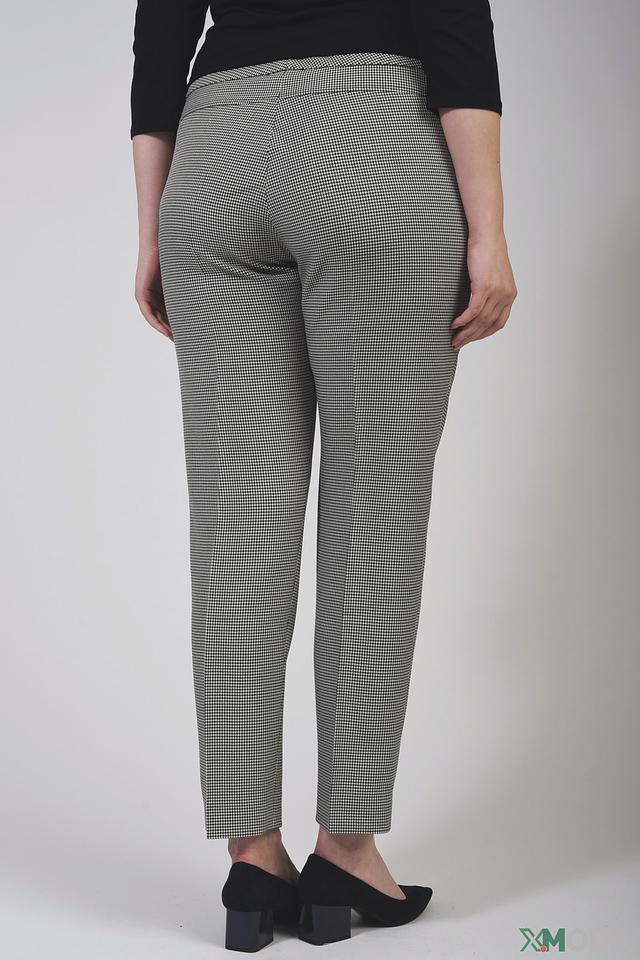 Цвет брюк – серый в клетку, сочетающий в себе оттенки белого и зелёного. Этот универсальный цвет легко сочетается с различными элементами гардероба, позволяя создавать разнообразные образы.