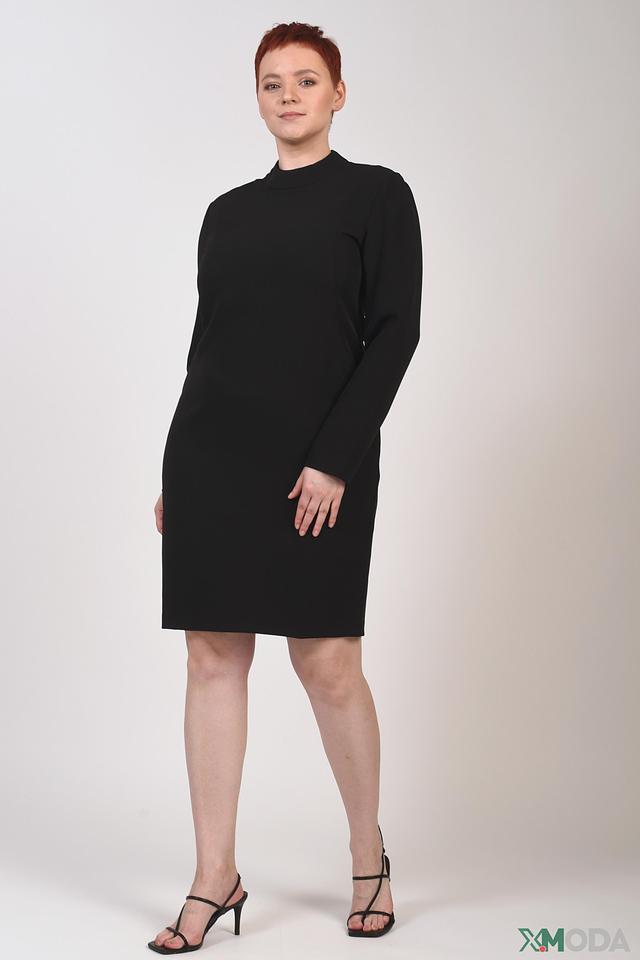 Платье имеет длину до колена и длинные рукава, что делает его подходящим для различных случаев – от офиса до вечерних мероприятий. Высокий округлый вырез горловины добавляет элегантности.