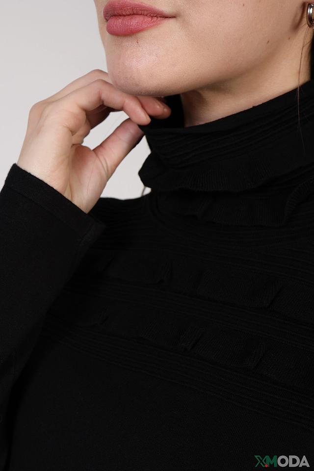 Воротник-стойка украшен нежным оборками, добавляющими образу женственности и изысканности. Водолазка выполнена из высококачественной вискозы с добавлением полиамида, что обеспечивает мягкость, комфорт и отличную посадку по фигуре.