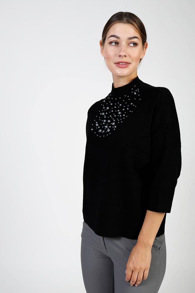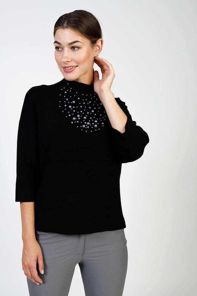 Чёрный пуловер Pezzo с деликатной вышивкой из жемчуга станет стильным дополнением к вашему гардеробу. Модель выполнена из мягкого и приятного к телу сочетания вискозы и полиамида, обеспечивая комфорт в носке. Состав: вискоза 80%, полиамид 20%